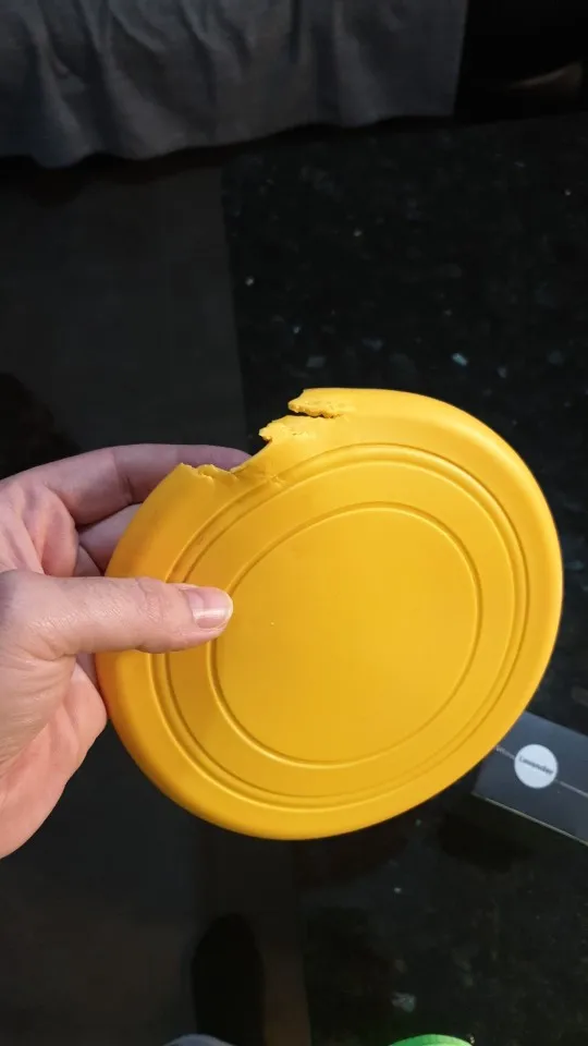 Фрисби хоть и упругая, но собачьим зубам поддалась с первого раза, пока не насквозь, но и поиграли мы всего раз. Летает хорошо, собакам интересна. Было бы лучше, если бы она была побольше и потяжелее.