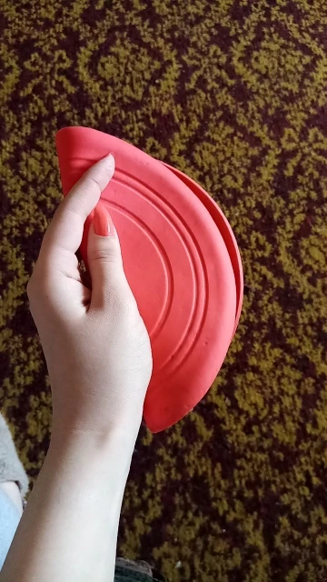 Шла 2 месяца тарелка, собаке понравилось, но сразу пару дырок образовалось, за 5 минут игры, сравнить не с чем качество, но мне кажется должно быть более прочное, если с собакой поиграть нормально, чтоб потягала она игрушку, то одноразовая игрушка будет. С продавцом не общалась