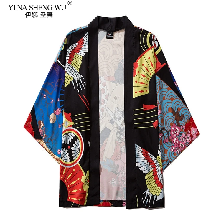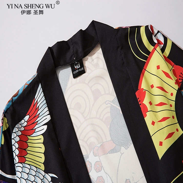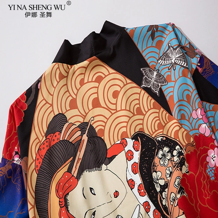 Японское кимоно уличная одежда Ukiyo-e с цветочным принтом кимоно косплей кардиган халат Haori Obi Традиционная японская одежда для женщин и мужчин