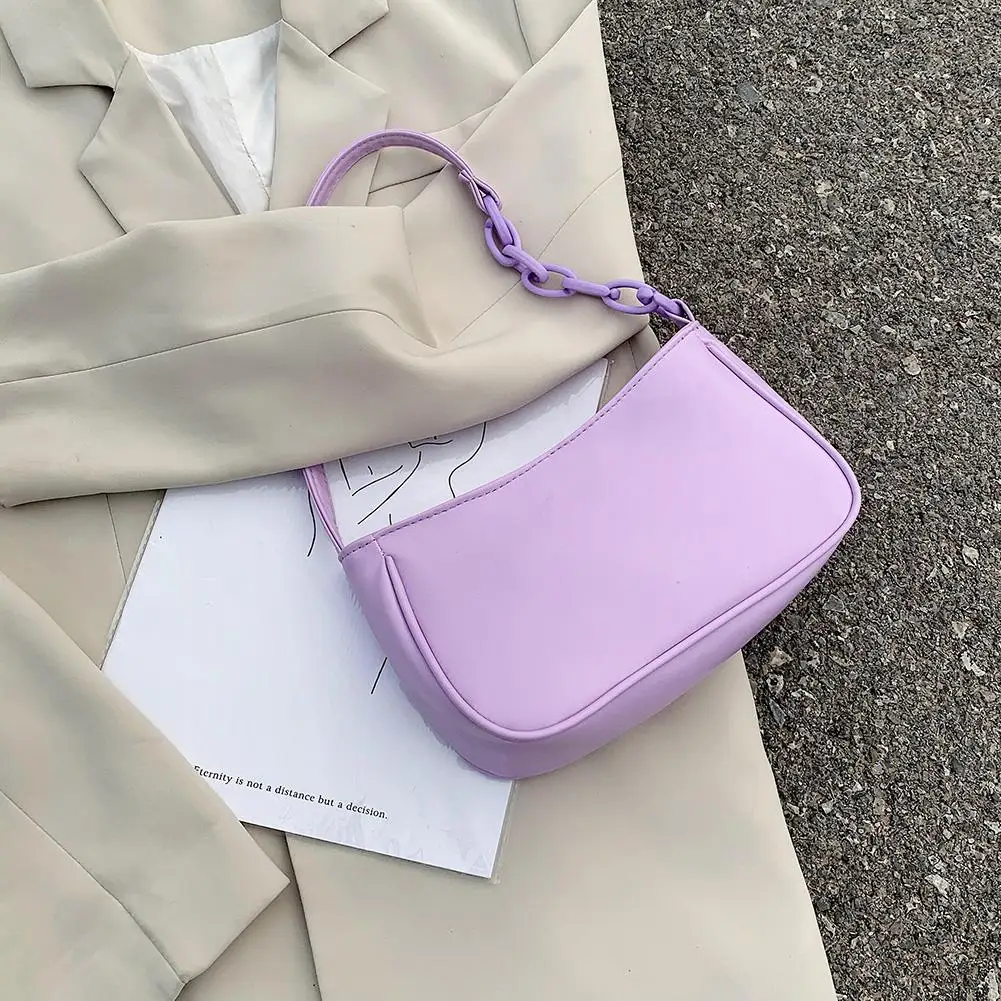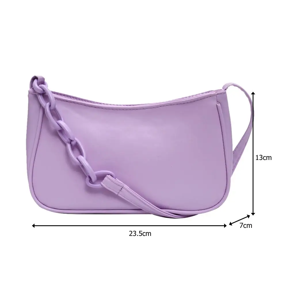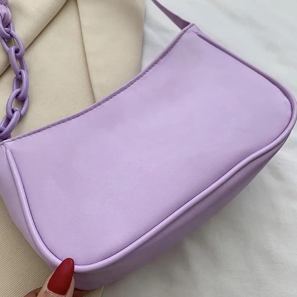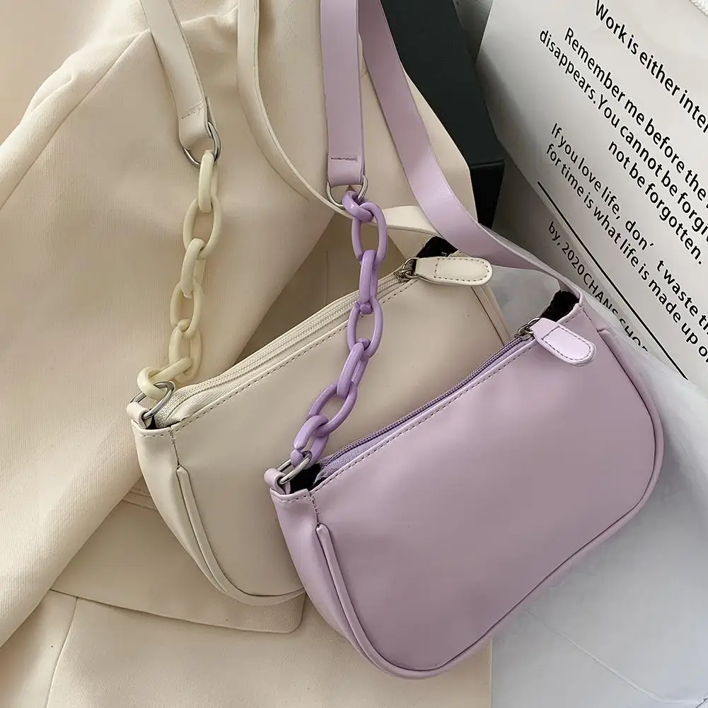 Модная женская сумочка из мягкой искусственной кожи, Наплечные сумки на акриловой цепочке для подмышек, однотонные Женские повседневные дорожные тоуты, кошелек