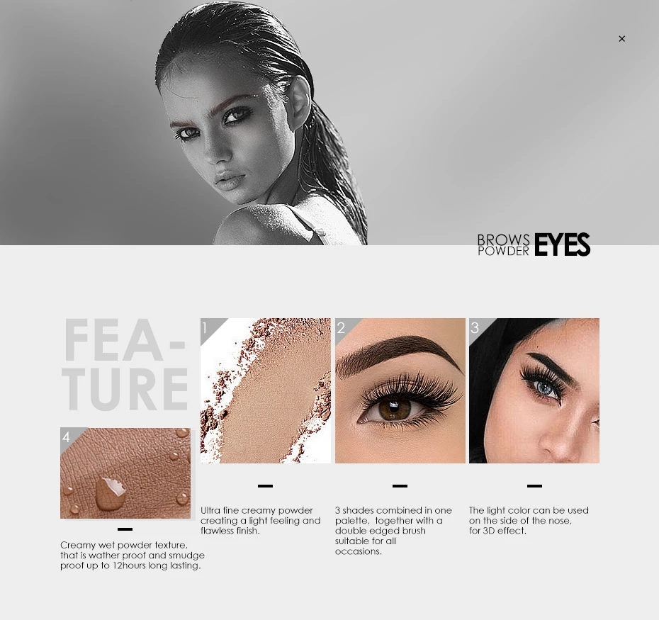 FOCALLURE 3 цвета, водостойкие тени для век, пудра для бровей, пали...