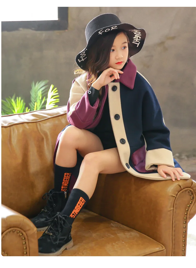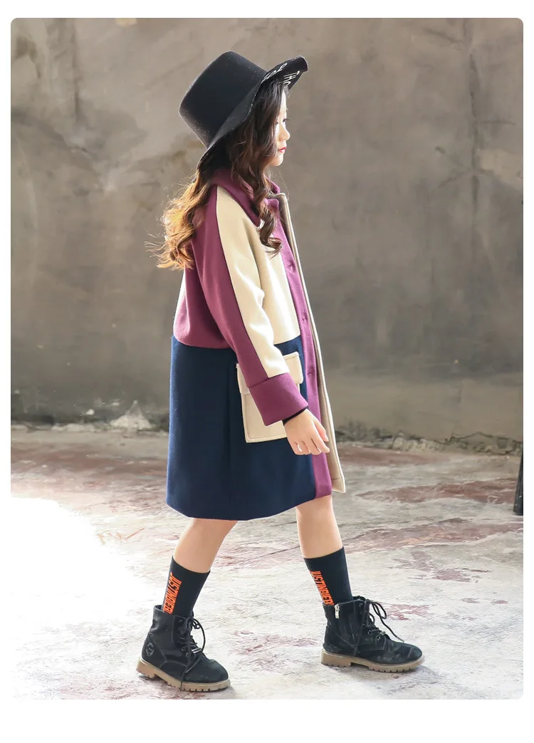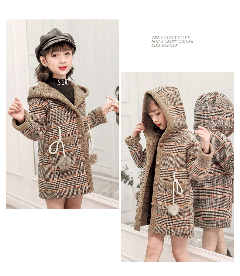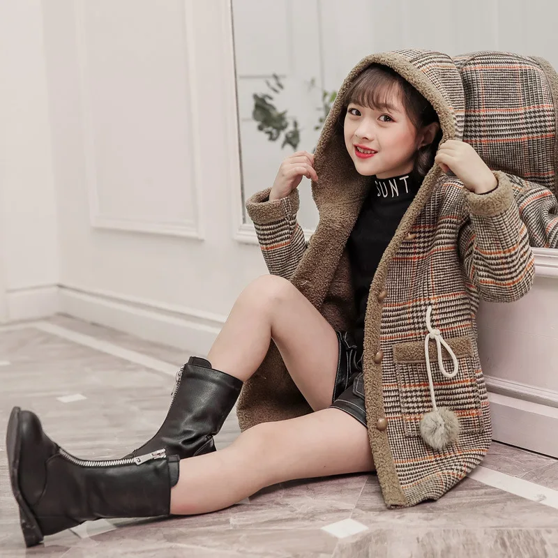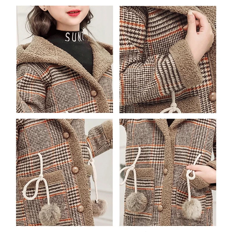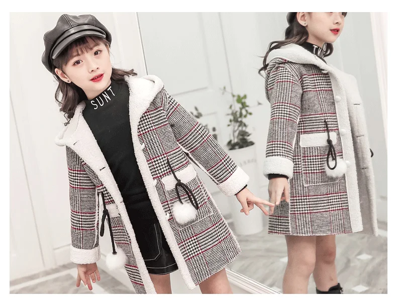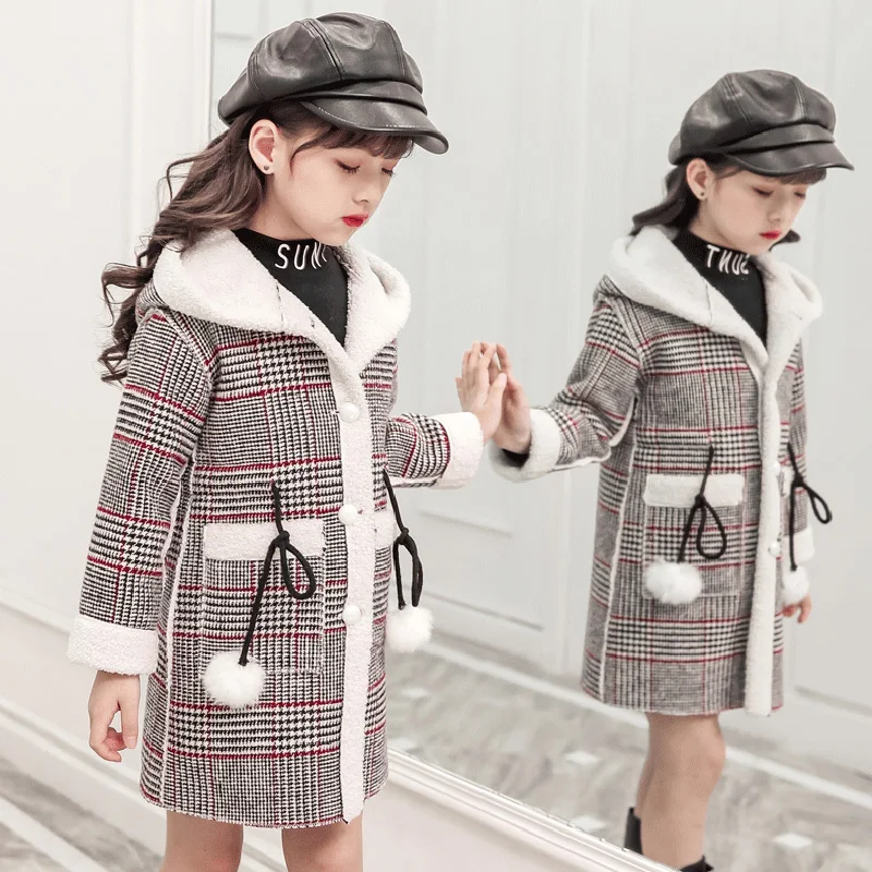 Осень-зима 2020, шерстяная куртка для девочек модное длинное пальто в клетку для девочек детское пальто для девочек от 4 до 12 лет