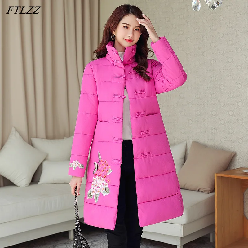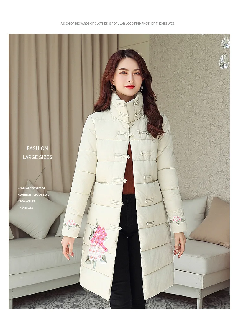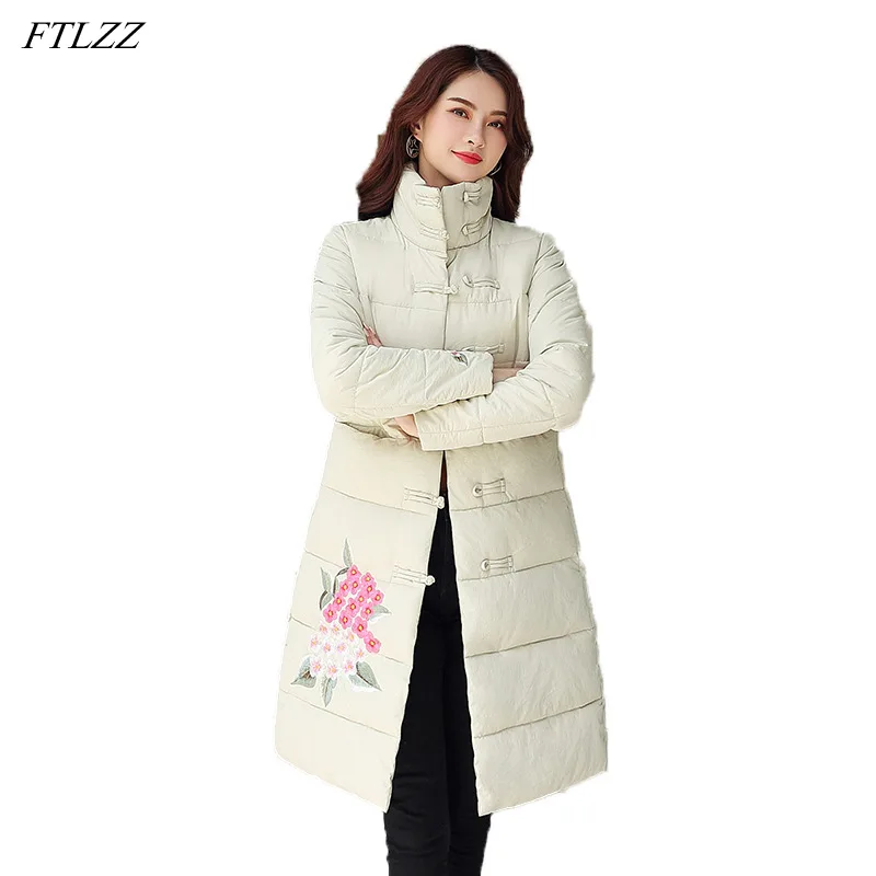 Куртка женская хлопковая однобортная с воротником-стойкой и цветочной вышивкой
