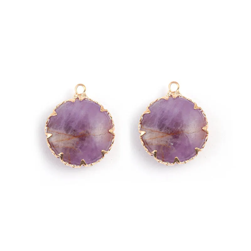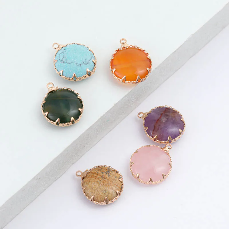 2 шт медный натуральный камень кулон круглый для Diy Шарм ожерелья для женщин изготовление, поиск ювелирных изделий кулоны, подвесы, фурнитура
