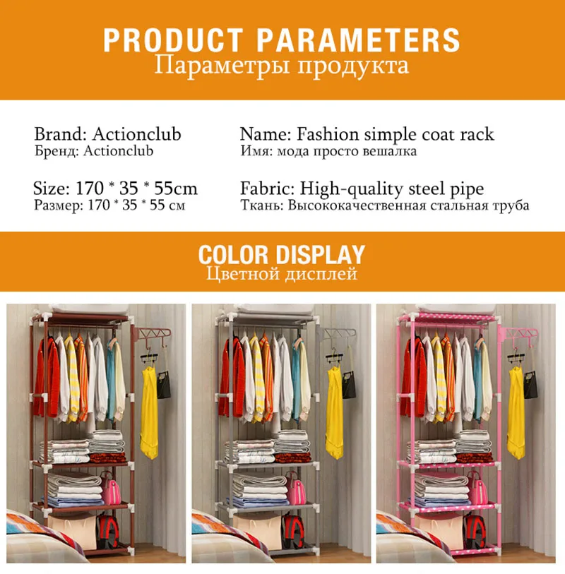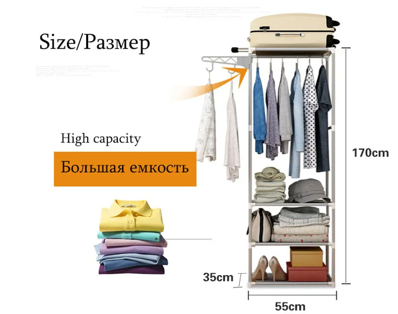 Металлическая напольная вешалка для одежды, подвесная полка для хра...