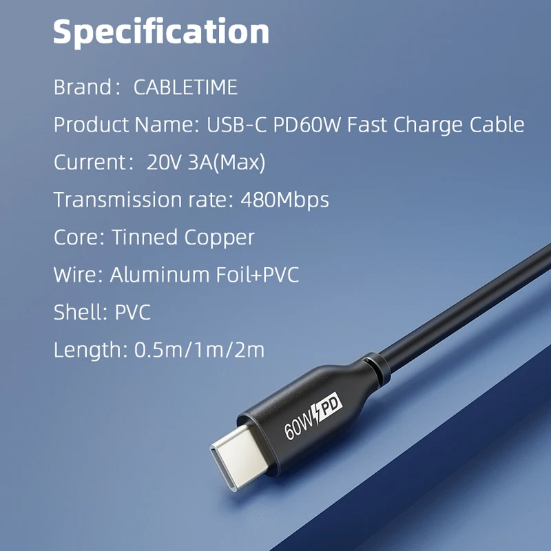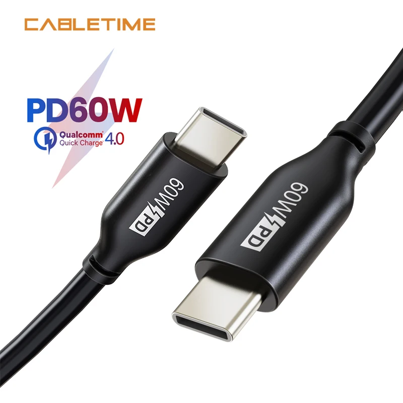 Кабель USB PD CABLETIME, 60 Вт, Type C на USB C, быстрая зарядка 4,0, для ПК, ноутбука, Huawei Mate 30, Macbook Pro, Air, PD кабель N396
