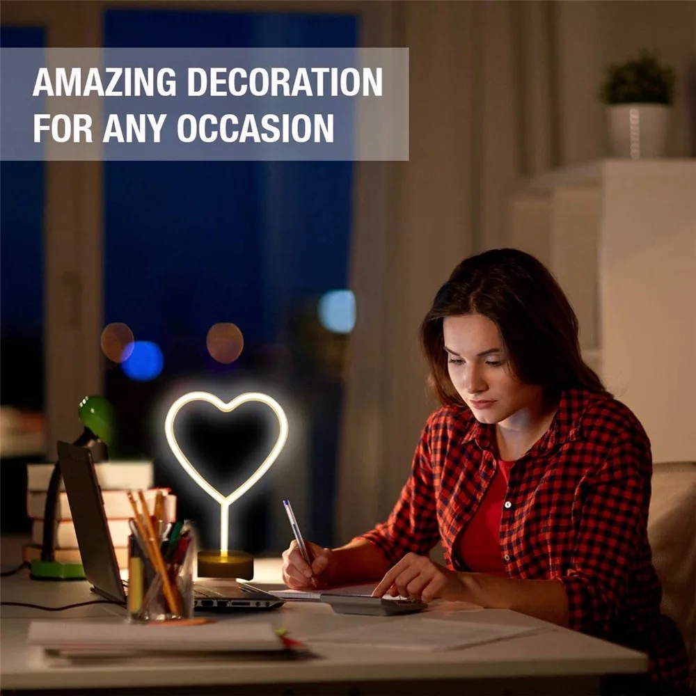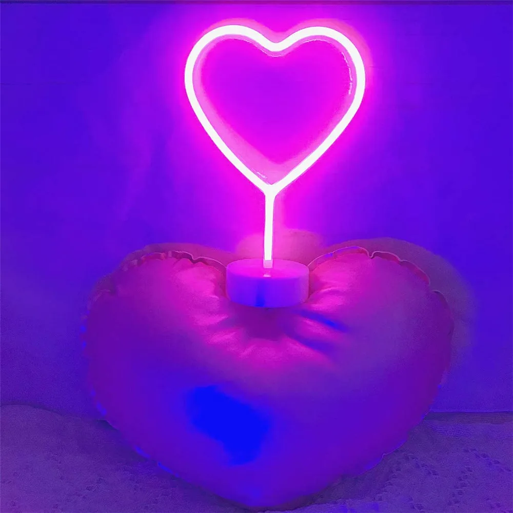Неоновый светильник в форме сердца, светодиодный неоновый светильник для украшения комнаты, светильник в форме сердца с держателем, настольный неоновый светильник для спальни Вечерние