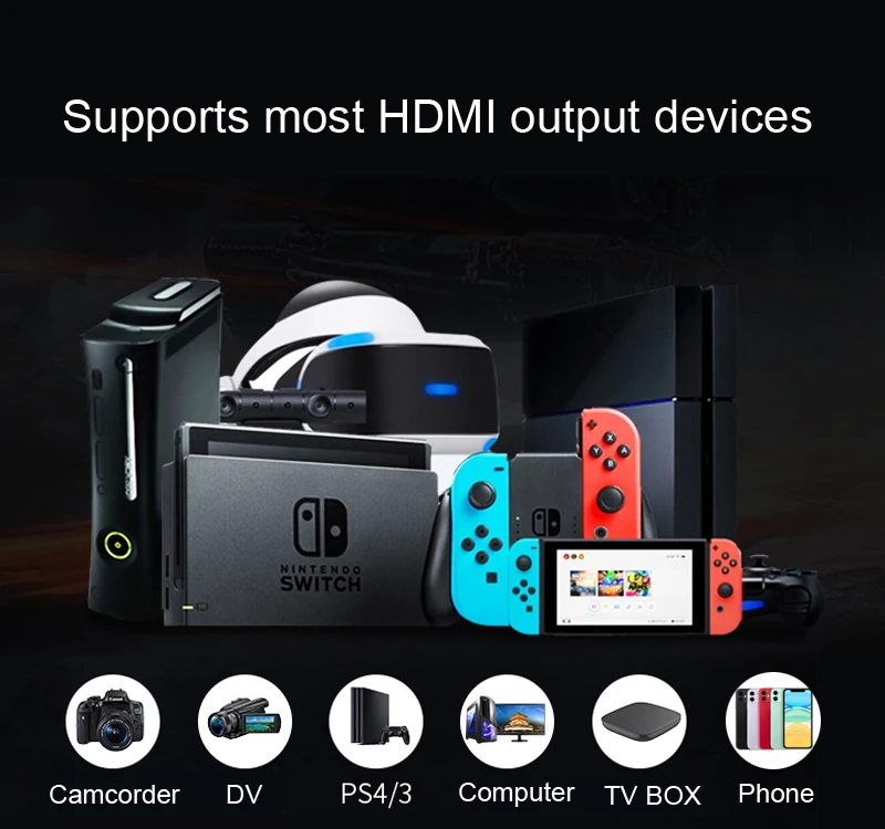 Эта карта сбора USB 2,0 может одновременно записывать как HDMI видео, так и HDMI аудио.Он может передавать аудио и видео сигналы на компьютеры и смартфоны для предварительного просмотра и хранения.Подходит для получения HD, обучения записи, медицинского изображения и т. Д.Особенности:1. Поддержка максимального входного разрешения 3840x2160 @ 30 Гц;2. Поддерживает максимальное выходное разрешение 1920x1080 @ 30 Гц;3. Поддержка 8/10/12 бит глубина цвета;4. Когда используется стандартный кабель AWG26, Расстояние входной передачи составляет до 15 м (разрешение 1080P и ниже);5. Поддержка большинства программ для приобретения, таких как VLC, OBS, Amcap и т. д.;6. Поддержка windows, Android и Mac OS;7. Соответствует спецификации USB video UVC;8. Соответствует спецификации USB аудио UAC;9. Без внешнего источника питания, маленький и портативный.Параметры:Разрешение HDMI: до 3840x2160 @ 30 ГцВидео Формат ввода: 8 / 10 / 12 бит глубина цветаРежим видеовыхода: YUV, JPEGРазрешение видеовыхода: максимальное выходное разрешение 1920x1080 @ 30 ГцПоддержка аудио формата: L-PCMДлина входного кабеля: ≤ 15 м, стандартный кабель AWG26 HDMIМаксимальный рабочий ток: 0.4A/5VDCДиапазон рабочих температур: (от-10 до + 55 ℃)Размер: 64x28x1 3 мм/2.52x1.1x0.51inПодключение к эксплуатации:1: подключите источник сигнала UHD и входной порт HDMI для USB карты сбора с помощью одной линии HDMI2: Подключите usb-разъем для USB карты сбора в usb-порт компьютера3: шаги по сборке (OBS): Откройте программное обеспечение-добавьте новый источник-выберите «устройство видеозахвата»-Установите размер экрана-выберите «режим студии» (двойное окно)-Нажмите «начать запись»Требования к конфигурации компьютерного оборудования:Процессор: ПК i5-3400 или выше; NB i7-3537u 2,0 ГГц или вышеКарта дисплея: ПК NVIDIA GT630 или выше; NC NVIDIA GT735M или вышеПамять: 4G RAMПримечание:В связи с различиями мониторов и эффектами освещения реальный цвет товара может немного отличаться от цвета на фотографиях. Спасибо!Возможны отклонения в 1-3 мм вследствие измерений вручную.