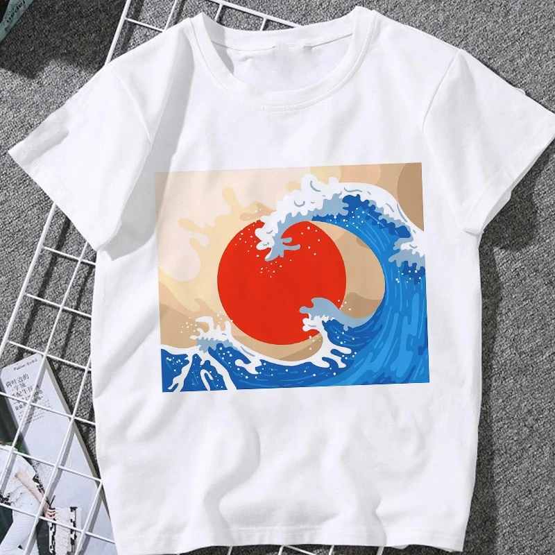 Футболка женская оверсайз с принтом океанских волн, модный топ в японском стиле, в стиле Харадзюку, летний топ