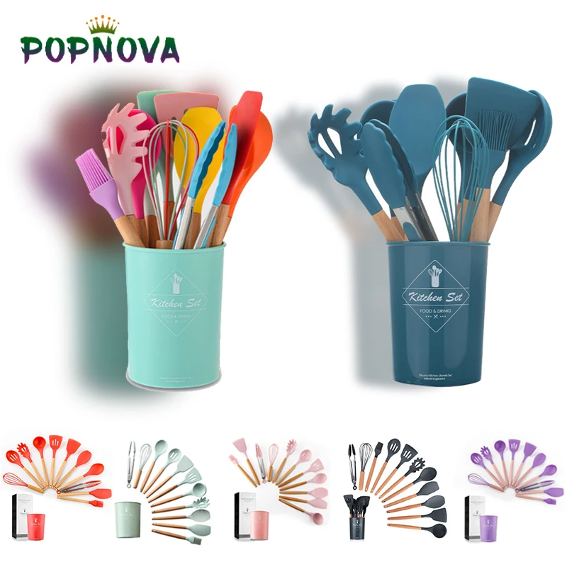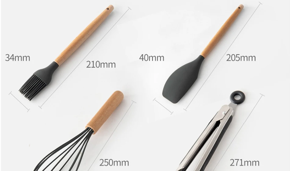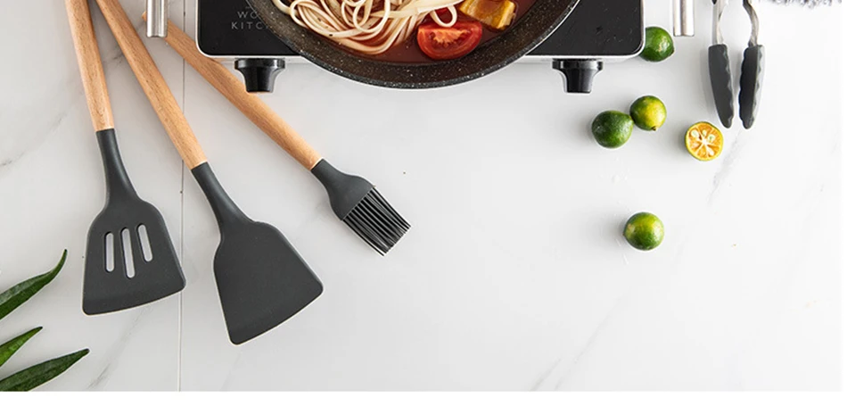 38 шт., силиконовые кухонные принадлежности с деревянной ручкой
