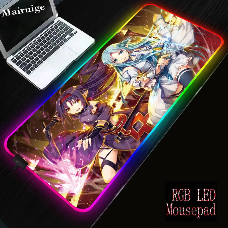 Mairuige аниме девушка меч искусство онлайн клавиатура для игр большой RGB светодиодный коврик для мыши резиновый прочный Рабочий стол Lockedge Mat для CSGO L XL