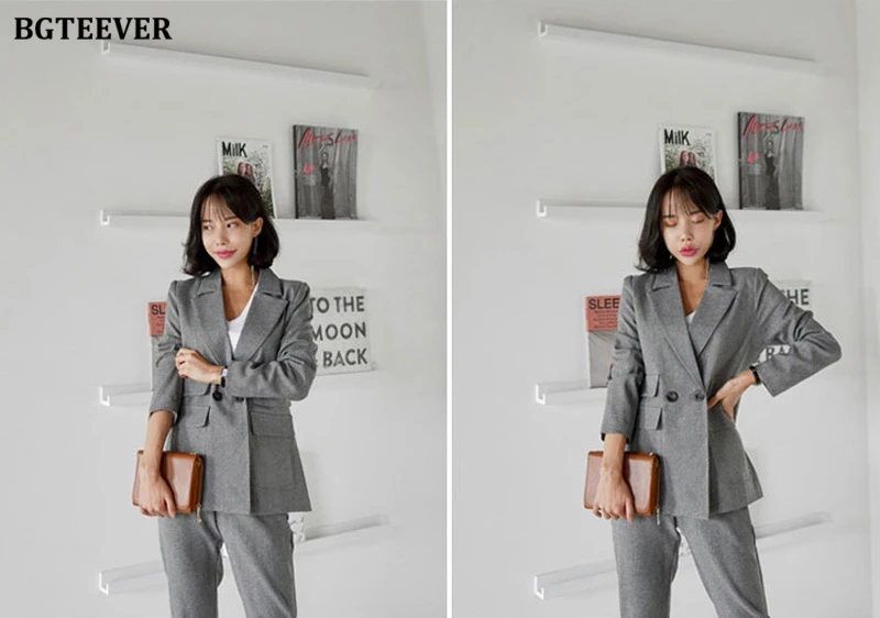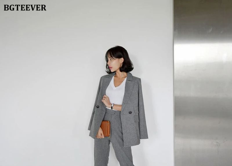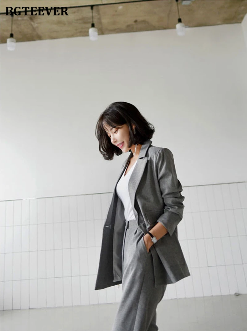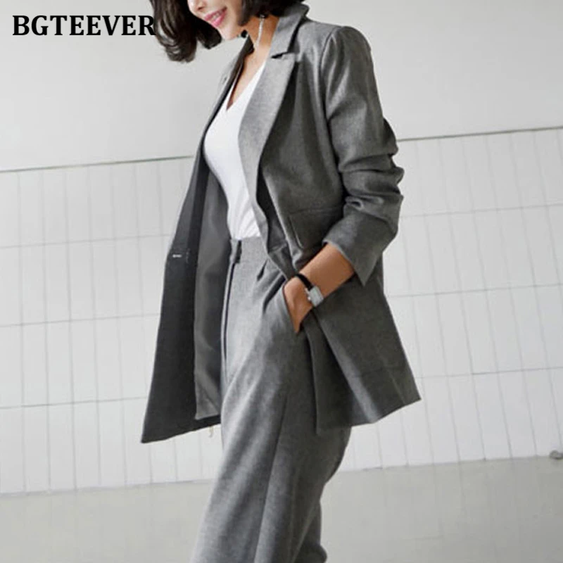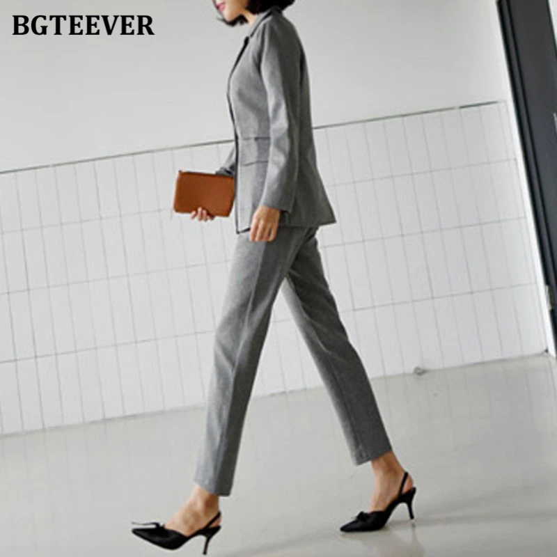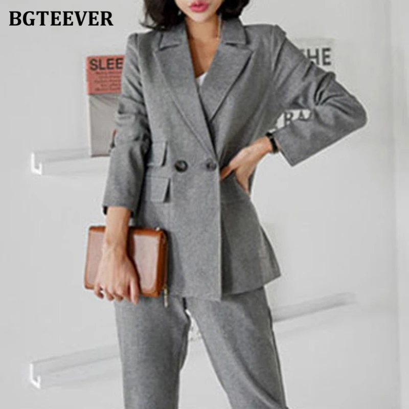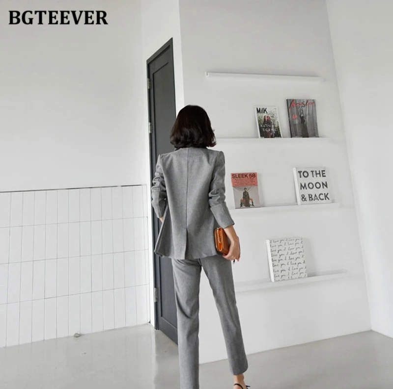 Женский брючный костюм BGTEEVER, из двух предметов, блейзер с длинным рукавом, однотонный, элегантный офисный брючный костюм, осень 2021