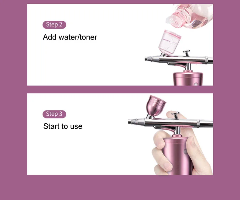 1. Изготовлен из алюминиевого материала, прочный и долговечный в использовании. 2. Компактный и практичный мини-воздушный компрессор, легкий и портативный, удобный для переноски. 3. Сэкономьте больше времени, чем ручное рисование, идеально подходит для вашего рисования. 4. Конструкция триггера двойного действия экономит сырье и делает его практичным. 5. Безопасная кислородная терапия, безболезненно, неинвазивно, не вредит вашей коже и телу. 6. Предоставляет две разные банки для жидкости 40 мл и 20 мл, вы можете использовать в соответствии с вашими требованиями (разное использование, разные жидкости и т. д.) 7. Экономия времени, энергосбережение и экономия денег, нет необходимости идти в салон красоты и добиться того же эффекта. 8. Легкая инъекция кислорода, способствующая кровообращению, отшелушивает кератиноциты, активированный гидрофильный фактор, гладкий, как лицо ребенка. 9. Вы можете использовать его для введения кислорода в вашу кожу, увлажнения, удаления тонких линий, сужения пор, задержки старения, пятен падания и так далее. 10. Многофункциональность: изготовление моделей распылителя, украшение торта, нанесение камуфляжных контуров, татуировка и маникюр и т. д. 11. Прекрасный подарок вашим близким и друзьям.