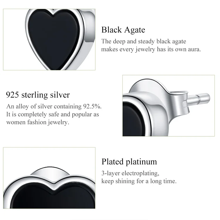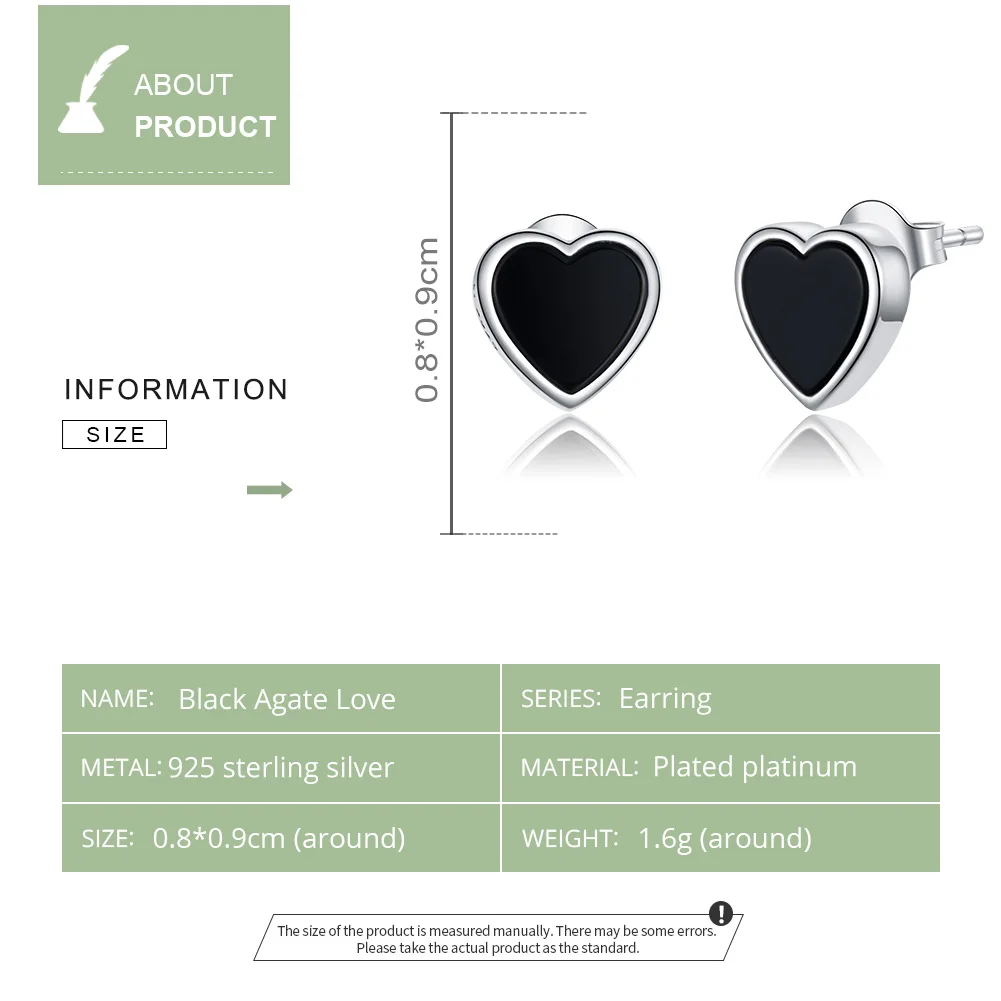 Серьги-гвоздики женские, мужские, из серебра 925 пробы, с черным агатом
