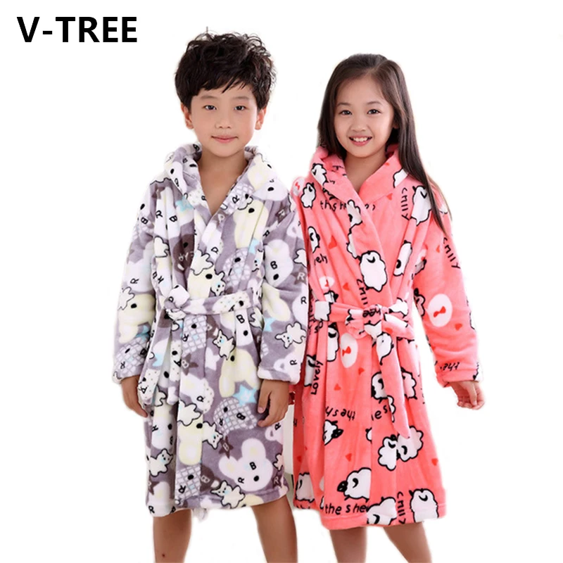 Детский банный халат V-TREE, утепленная мягкая Фланелевая Пижама для мальчиков и девочек, теплое детское полотенце, Детская ночная рубашка, одежда для сна на осень и зиму