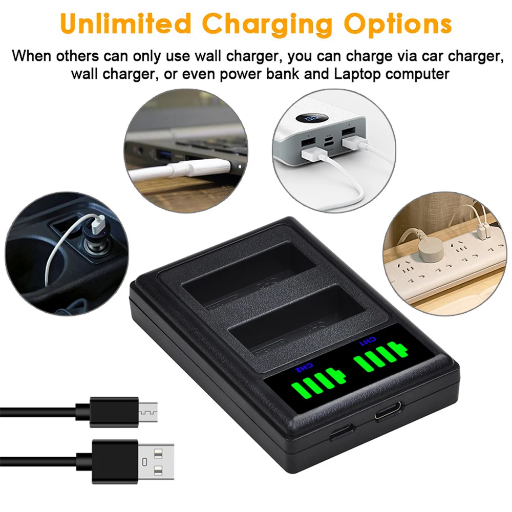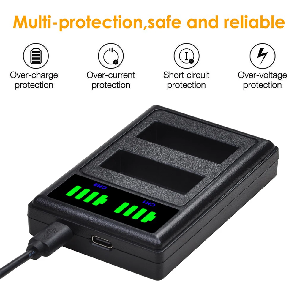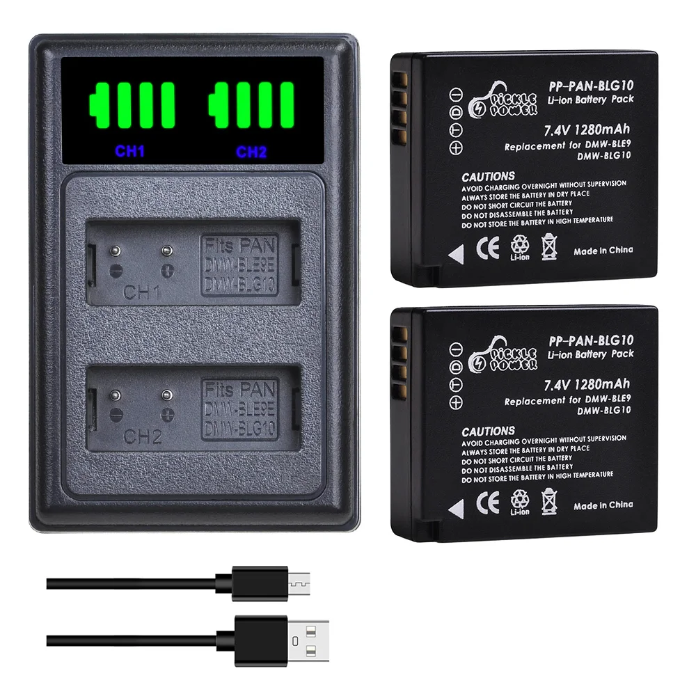 Аккумулятор Pickle Power 1280 мАч DMW-BLG10 + зарядное устройство для Panasonic Lumix DMC GF6 GX7 GF3 GF5 ZS100 ZS60 LX100 GX85 DC-ZS70 GX80.