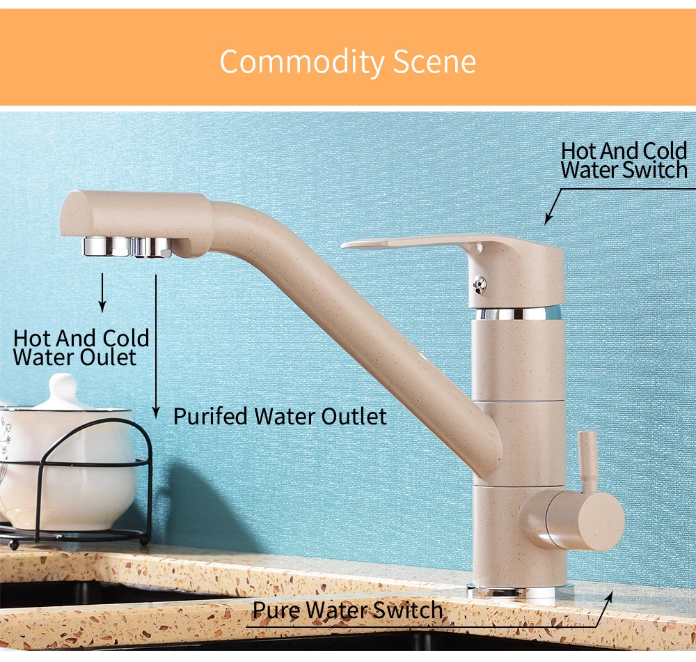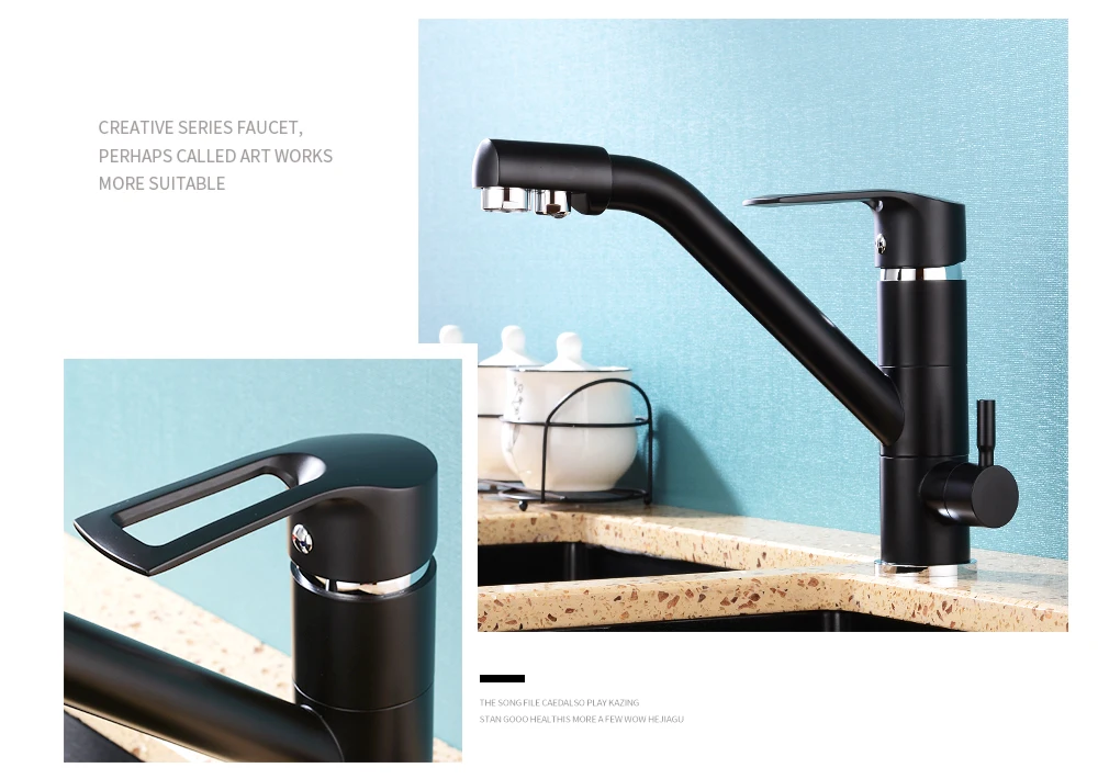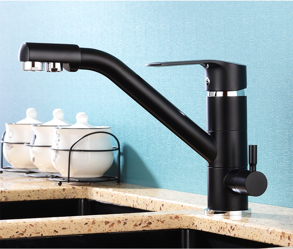 Смеситель для кухни с фильтрованной водой, кран с поворотом на 360 градусов, черный цвет