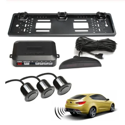 Светодиодный радар заднего хода для автомобиля, европейская Лицензионная система парковки с 3 ультразвуковыми датчиками на рамке Европейского номерного знака, новый список