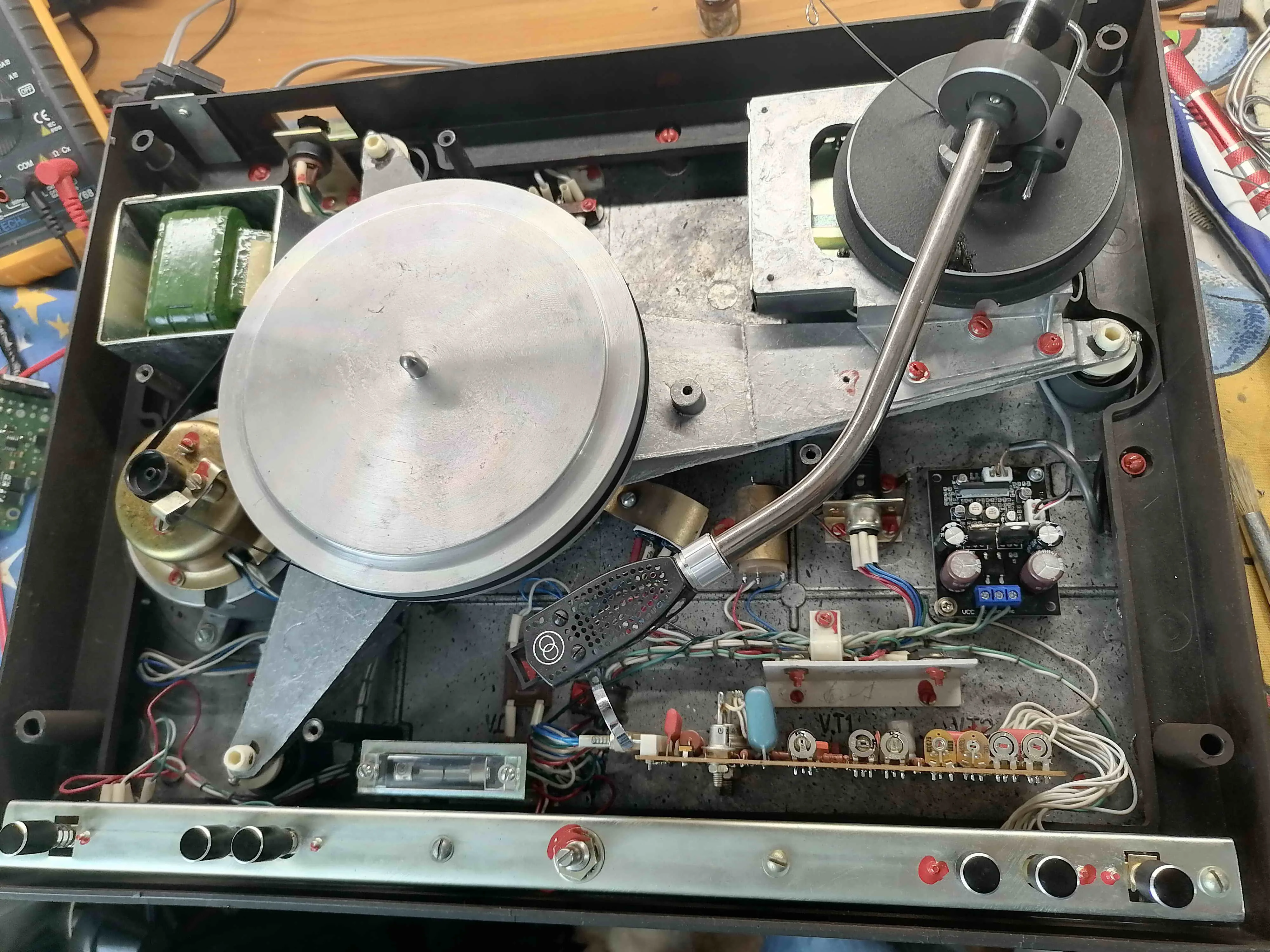 Хрень полная. С моей "Веги-122С" не тянет как по уровню низов, так и по общему усилению для входа усилителя мощности. Впечатление - "плоская" АЧХ вместо требуемой для корректора. Плюс фон 50 Гц, непобежденный никакими танцами с бубном. Пришлось вкорячить в вертушку предкорректор, собранный еще в советское время на К548УН1А. В результате от приобретённого изделия имею двухполярный выпрямитель-стабилизатор на 12В, может на что сгодится...