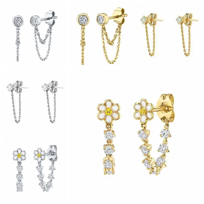 Женские серьги-гвоздики из серебра 925 пробы с кубическим цирконием