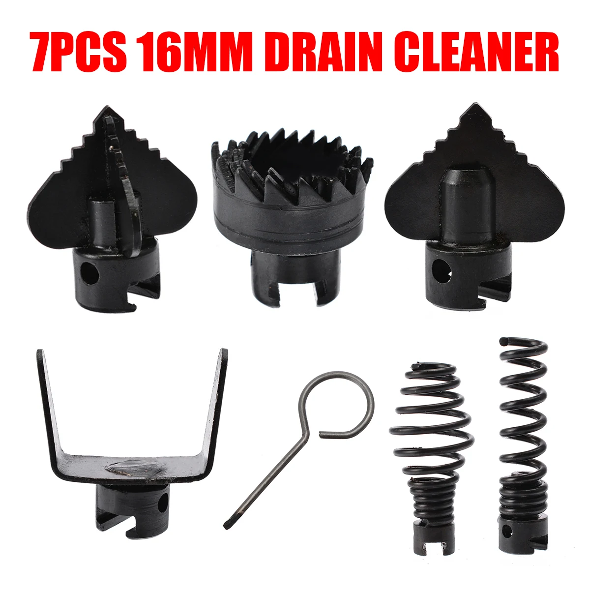 7 шт., Набор насадок для очистки дренажа из марганцевой стали