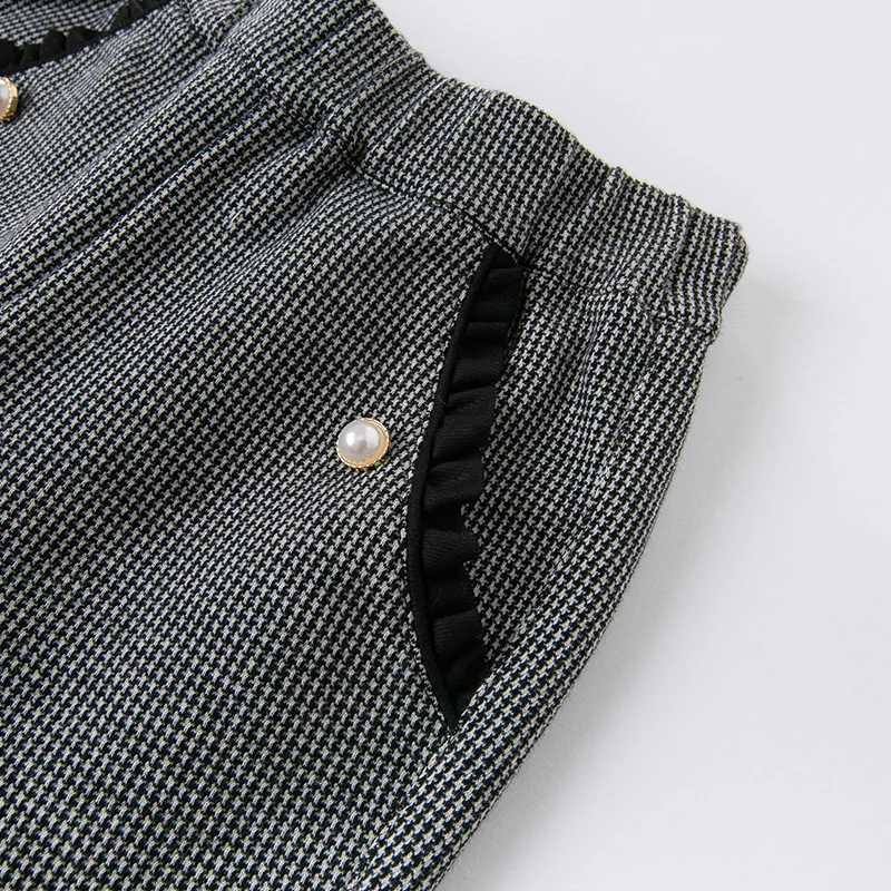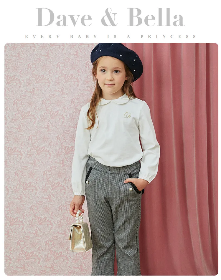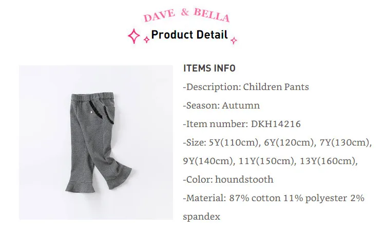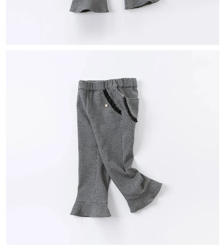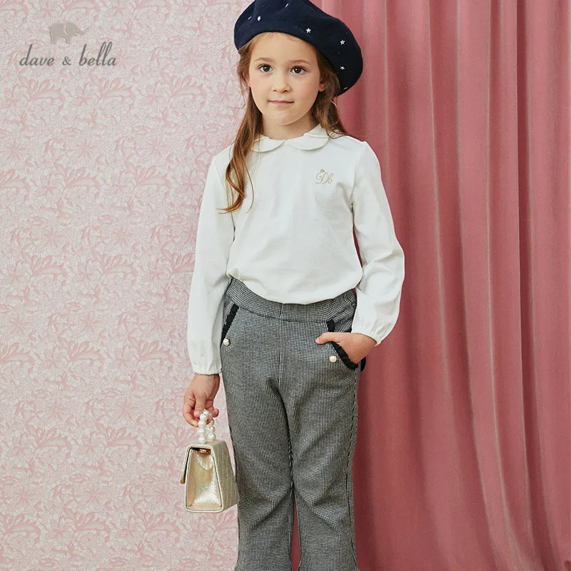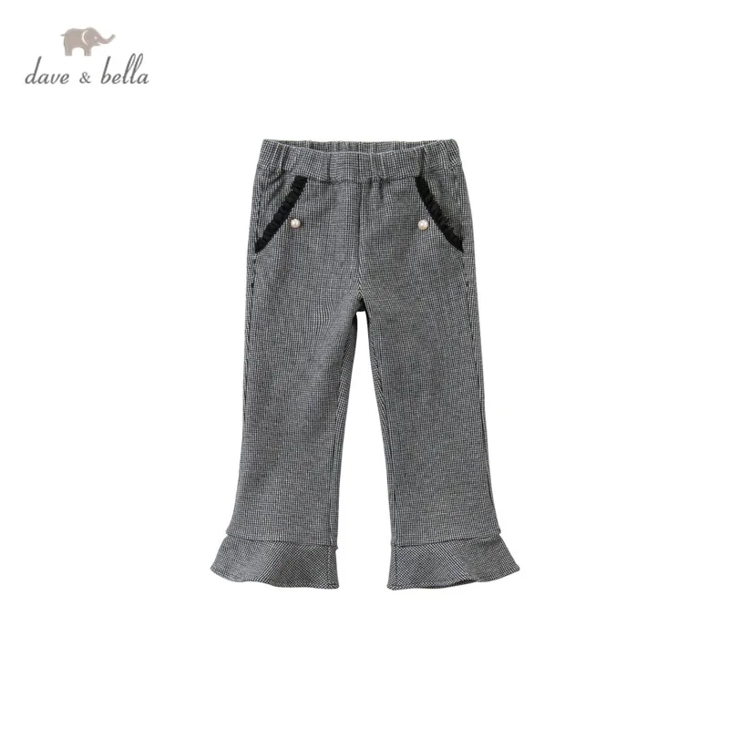 DKH14216 dave bellaосенние От 5 до 13 лет для девочек; Модные штаны с карманами и узором гусиные лапки; Детские изысканные повседневные длинные штаны