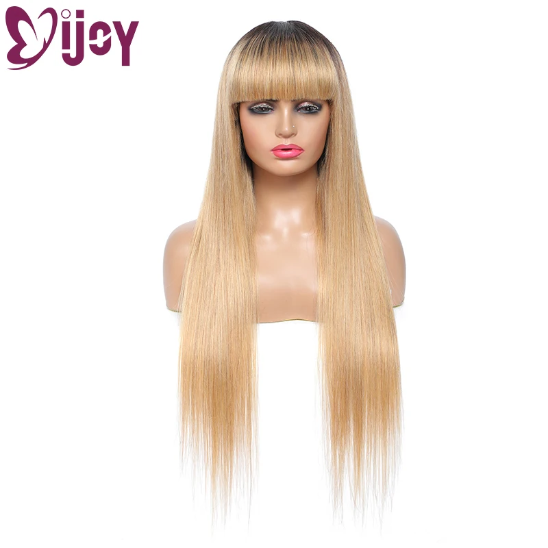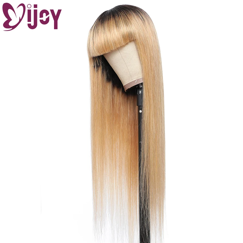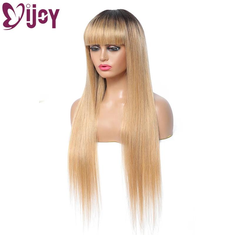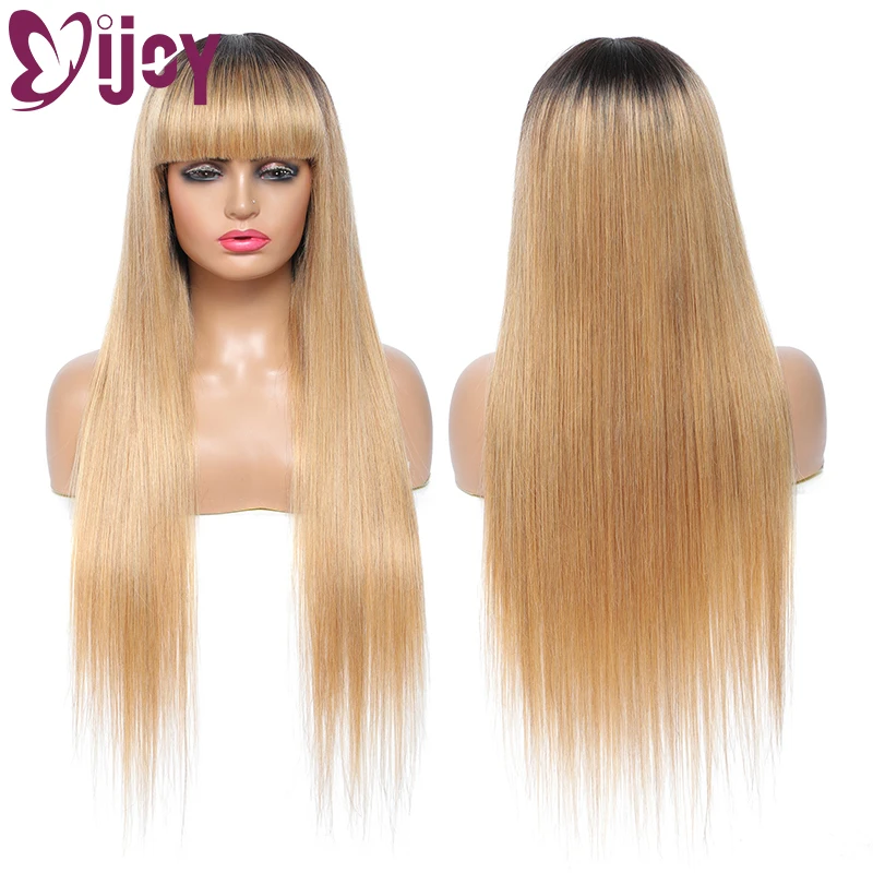 Прямые парики Omber Honey блонд из человеческих волос с челкой, бразильский парик без клея для чернокожих женщин IJOY