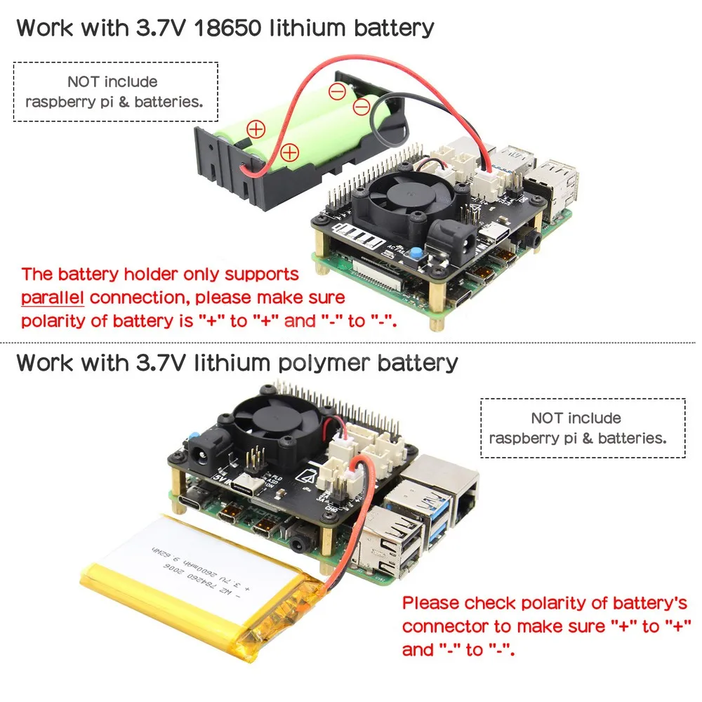 Наше первоначальное стремление к разработке X708 заключается в том, чтобы соответствовать оболочке NAS (например, X829-C1, X857-C1, X825-C7), чтобы обеспечить raspberry pi NAS решение с функцией UPS. Чтобы сэкономить место, мы должны отделить аккумулятор от UPS платы расширения при проектировании. Это также самая большая разница между X708 иX728;