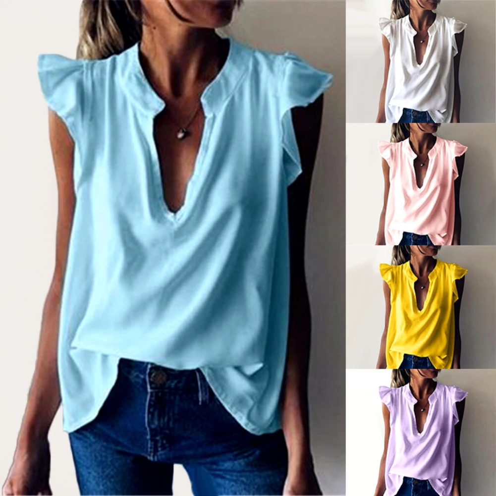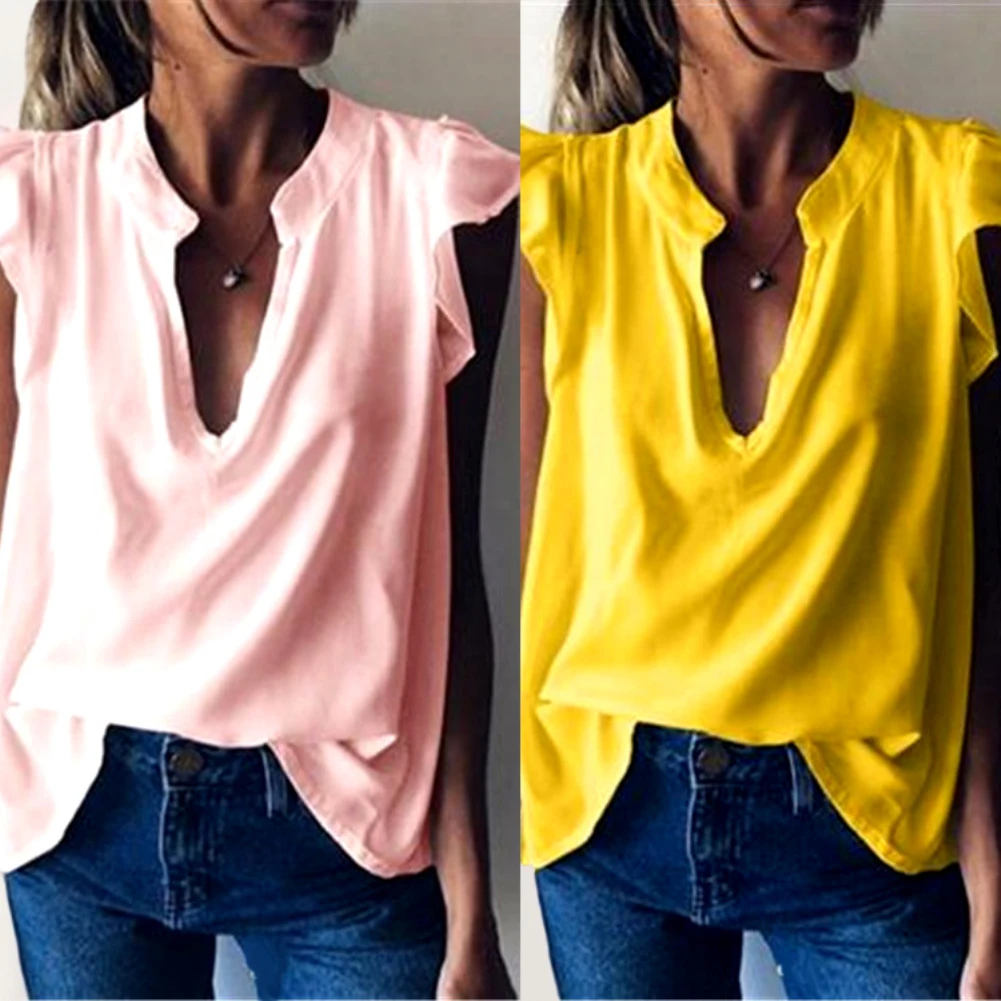 Женская модная однотонная свободная футболка с V-образным вырезом и короткими рукавами с оборками Характеристики: Эта Блузка изготовлена из мягкого и удобного материала премиум-класса. Вы можете сочетать с шортами, джинсами, повседневными брюками для красивого образа днем и ночью. Подходит для работы, улицы, путешествий, свиданий, покупок, повседневной носки и т. д. Тип: блузка Тип размера: Обычный Пол: женщин Материал: нейлон, полиэстер, спандекс Стиль: Модный Длина рукава: короткий рукав Тип шеи: V-образный вырез Уход За Одеждой: ручная стирка Особенности: рукав с оборками, свободный стиль, легко сочетается Размеры: [Наш Размер S] Бюст: 94 см/37 дюймов, рукав: 9 см/3,5 дюймов, длина: 71 см/28 дюймов (прибл.) [Наш Размер M] Бюст: 98 см/38,6 дюйма, рукав: 9,5 см/3,7 дюйма, длина: 72 см/28,3 дюйма (прибл.) [Наш Размер L] Бюст: 102 см/40,2 дюйма, рукав: 10 см/3,9 дюйма, длина: 73 см/28,7 дюйма (прибл.) [Наш Размер XL] Бюст: 106 см/41,7 дюйма, рукав: 10,5 см/4,1 дюйма, длина: 74 см/29,1 дюйма (прибл.) [Наш Размер 2XL] Бюст: 110 см/43,3 дюйма, рукав: 11 см/4,3 дюйма, длина: 75 см/29,5 дюйма (прибл.) [Наш Размер 3XL] Бюст: 114 см/44,9 дюйма, рукав: 11,5 см/4,5 дюйма, длина: 76 см/29,9 дюйма (прибл.) [Наш Размер 4XL] Бюст: 118 см/46,5 дюйма, рукав: 12 см/4,7 дюйма, длина: 77 см/30,3 дюйма (прибл.) Примечания: Пожалуйста, обратитесь к нашей таблице размеров и выберите правильный размер. Из-за разницы в освещении и настройках экрана цвет изделия может немного отличаться от изображения. Посылка входит: 1 х блузка