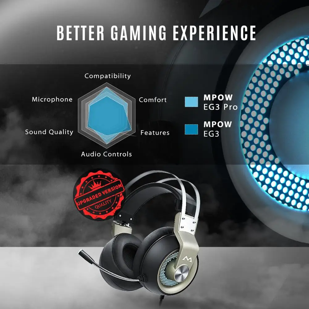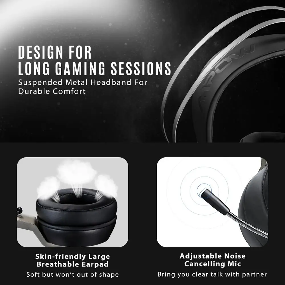 Игровая гарнитура Mpow EG3 Pro, Накладные наушники с объемным звуком и микрофоном, с шумоподавлением, наушники для iPad, PS4, ПК, ноутбука и планшетов