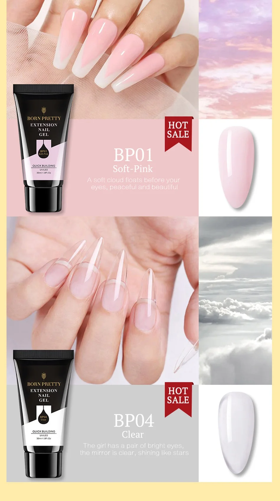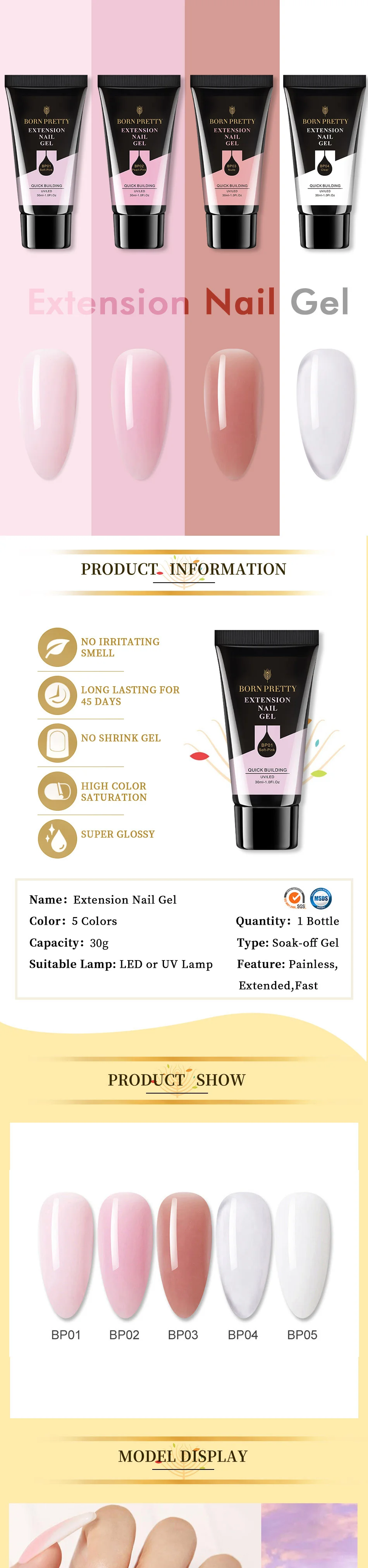 Гель-лак для ногтей BORN PRETTY, 30 мл, акриловый, прозрачный, розовый, УФ