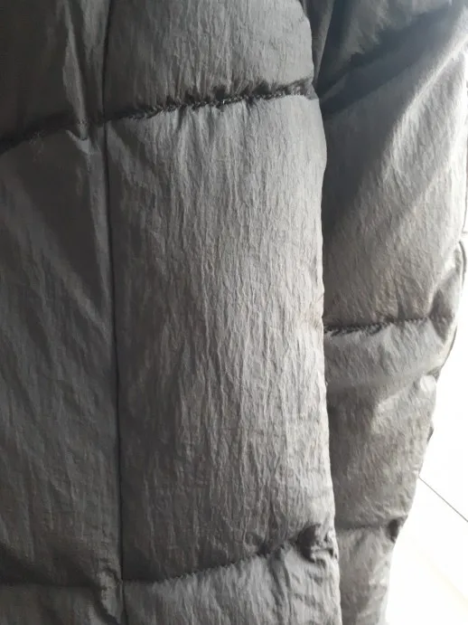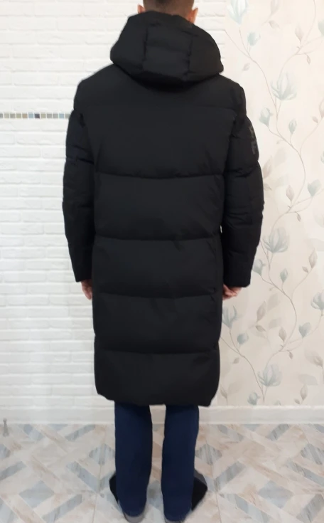 Пальто мне не очень понравилось. А конкретно не понравилась ткань верха и толщина набивки. Ткань верха матовая и жатая, даже после отпаривания. Толщина пальто не такая как я ожидала, она тоньше. Посмотрим как будет в нем зимой, я думаю прохладно. Ткань не промокает. К качеству претензий нет, сшито хорошо. Внутри есть два кармана на груди. На рукавах есть внутренние манжеты. Размер идет в размер. Брали на рост 185 см., длина ниже колена.