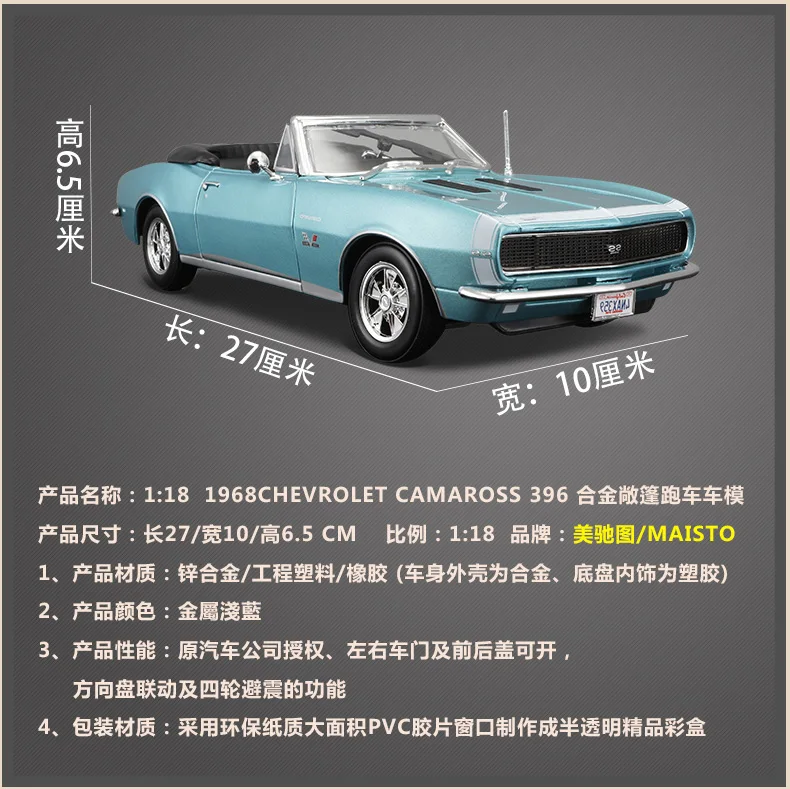 Модель автомобиля Maisto 1:18 1967 Chevrolet Camaro SS 396 Coupe из сплава, собирайте подарки, игрушки