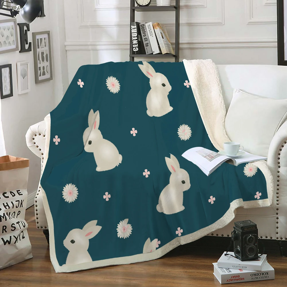 Одеяло с кроликом, милое домашнее животное, плед с животными, синее мягкое уютное плюшевое одеяло, шерпа, Флисовое одеяло, одеяло для девочек и мальчиков, детское одеяло