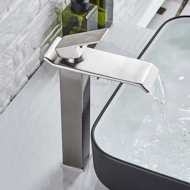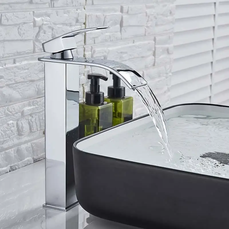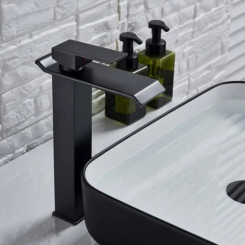 Квадратный хромированный и черный смеситель водопад для раковины Смеситель для ванной кран с широким носиком Смеситель для раковины кран для горячей и холодной воды