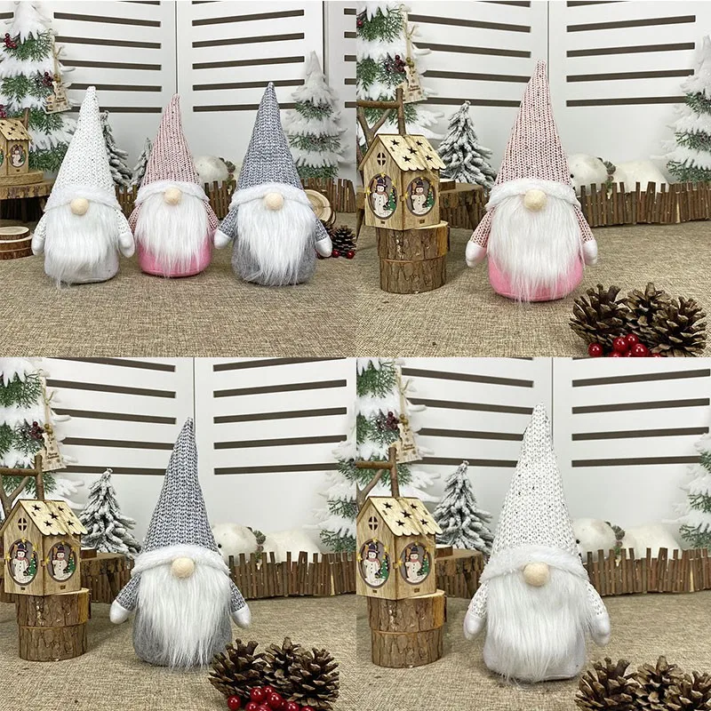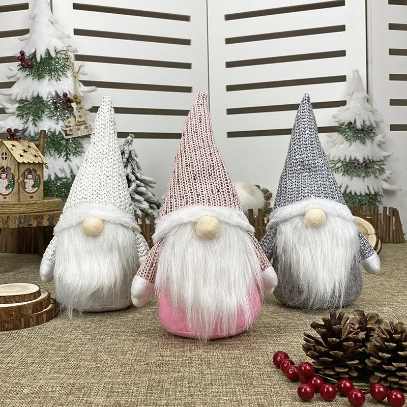 Рождественские гномы, шерстяная вязаная шапка с бородой, гномик, плюшевая кукла ручной работы, украшение для дома, настольный Санта