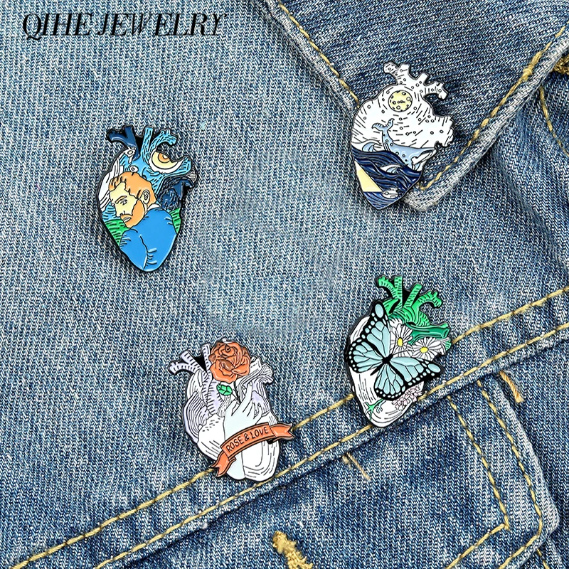 Эмалированная брошь в форме сердца, креативная брошь Ван Гога, бабо...