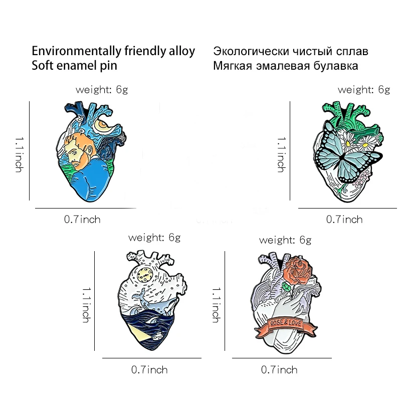Сердце Форма эмаль значки на заказ океан "Ван Гог", "пространство Р...