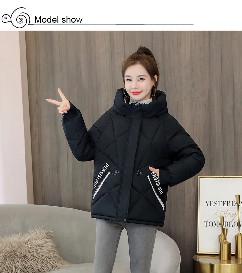 Куртка женская зимняя с капюшоном, на молнии, с буквенным принтом