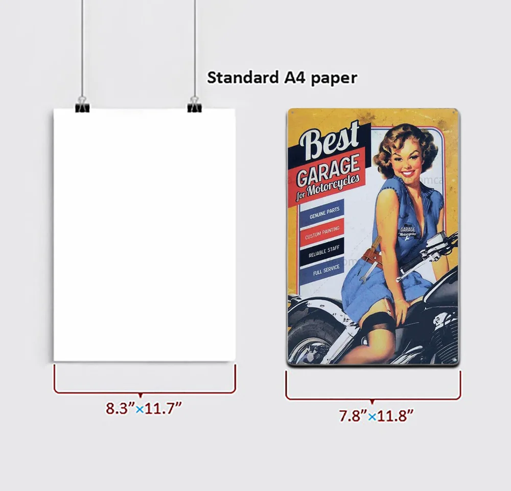 Информация о продуктеПрочный-7,8 ''* 11,8"Металлический знак, напечатанный с несколькими цветами на оловянном для многих лет отображения.Легко повеситьОснащена четырьмя винтами отверстий, светильник вес, может быть установлена с Двойной Клейкой Ленте или ленты команды.Ретро стиль-Искусственная бронза и ржавчина придают ей идеальный вид в стиле ретро, и он выглядит очень хорошо в любом гараже, баре, магазине, исследовании или валу.Идеальный подарок-Действительно уникальный подарок, гарантирующий улыбкуПримечание: Как влияет светильник, цвета предметов могут немного отличаться от изображенийИнформация о продукте