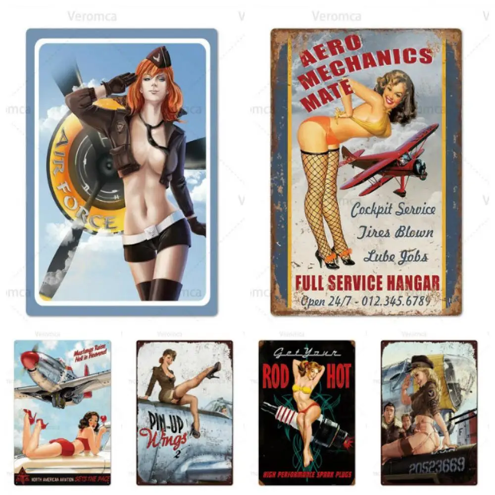 Пристегивающаяся девушка, искусственная металлическая винтажная пикантная металлическая вывеска, Настенный декор для гаража, бара, паба, клуба, мужская пещера, искусственная металлическая живопись