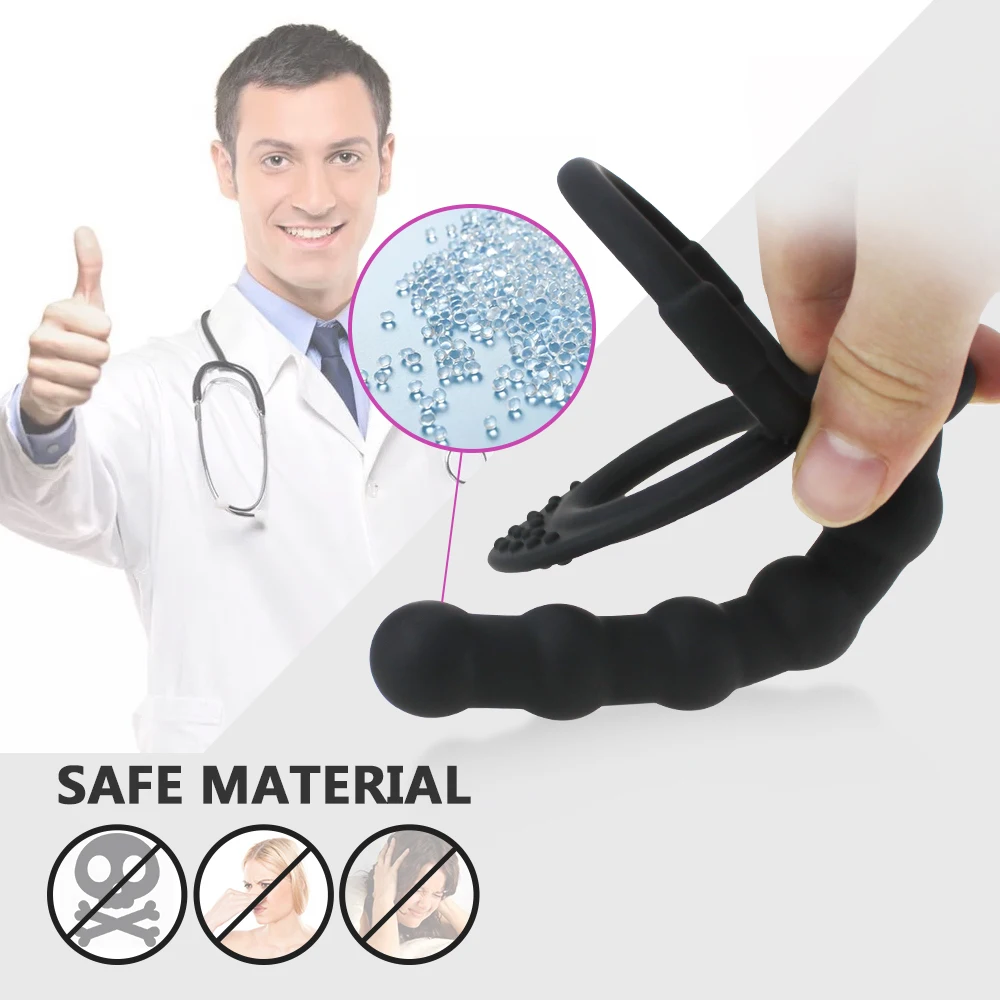 Двойное кольцо на член с реалистичным пробером для двойного проникновения удовольствия