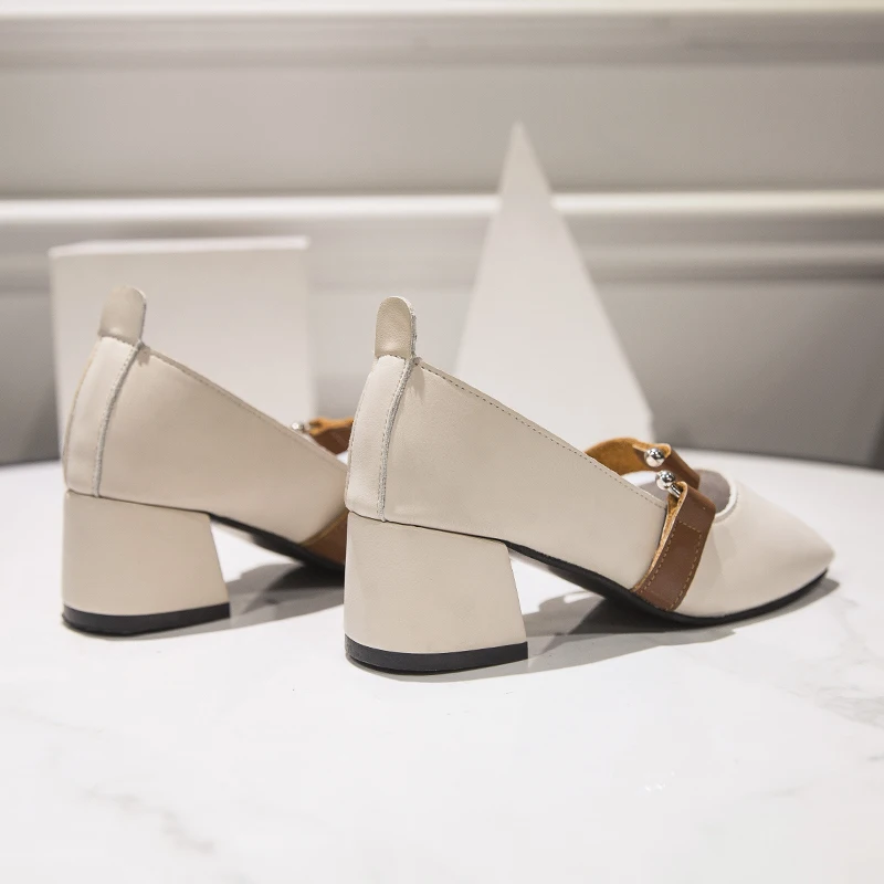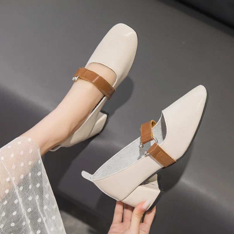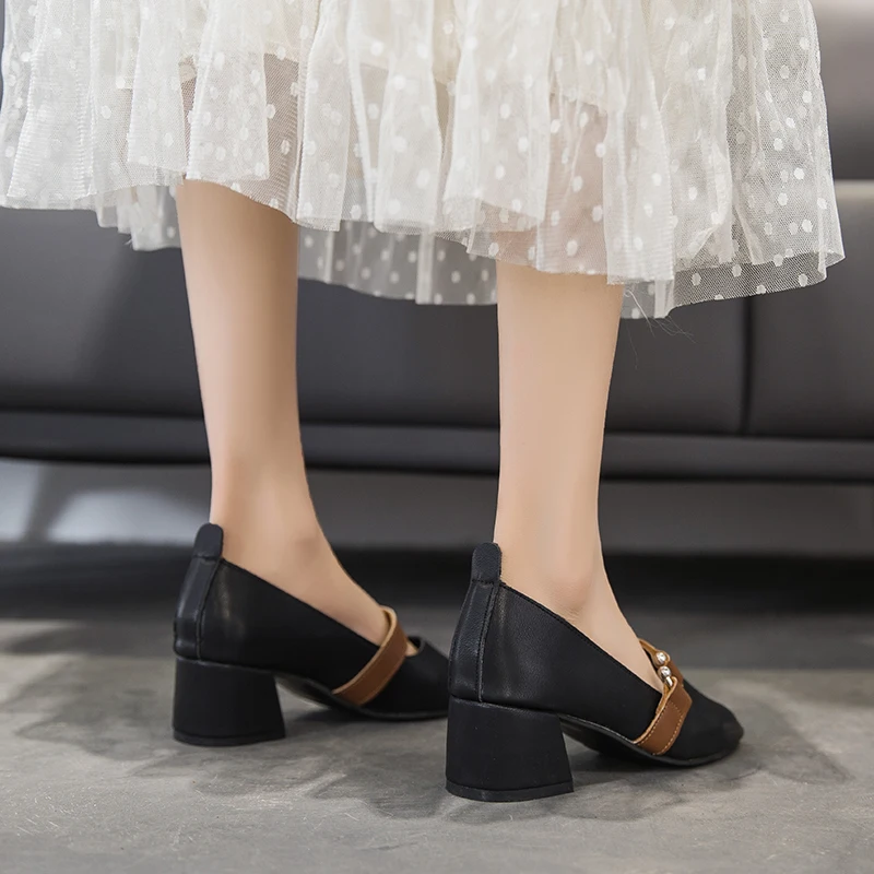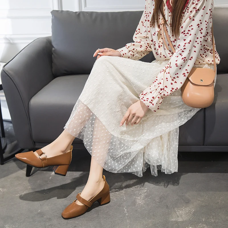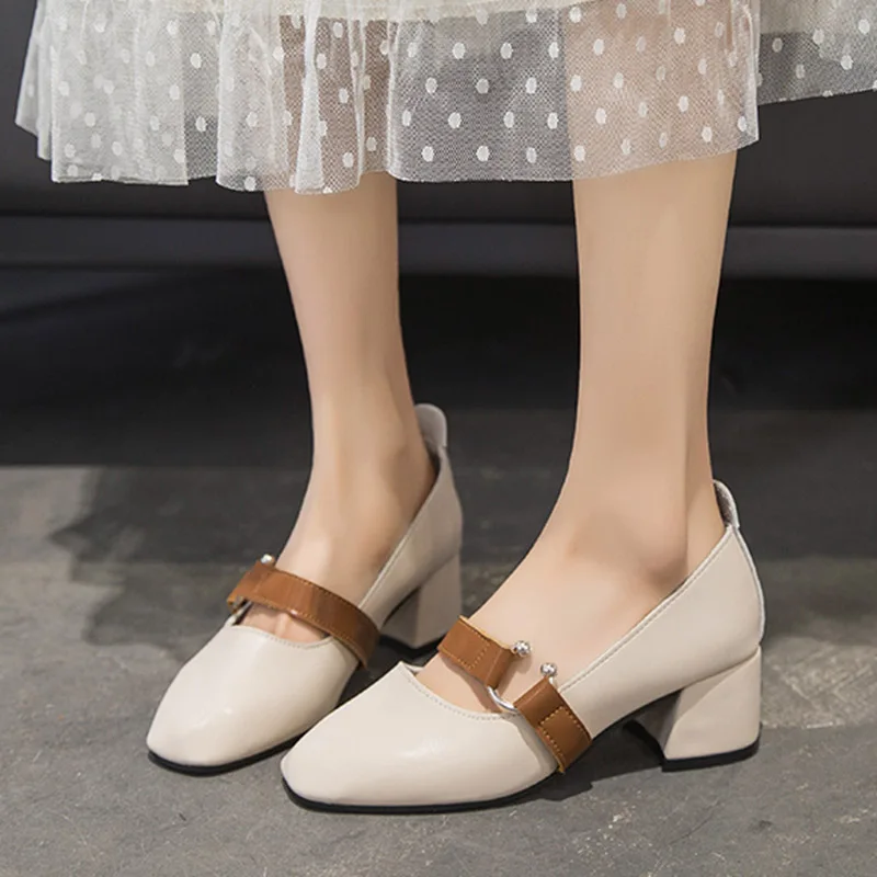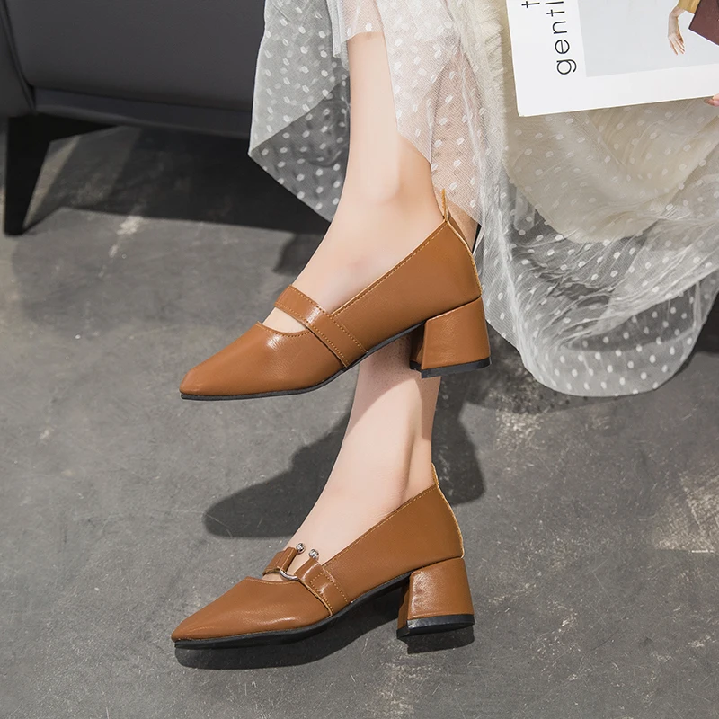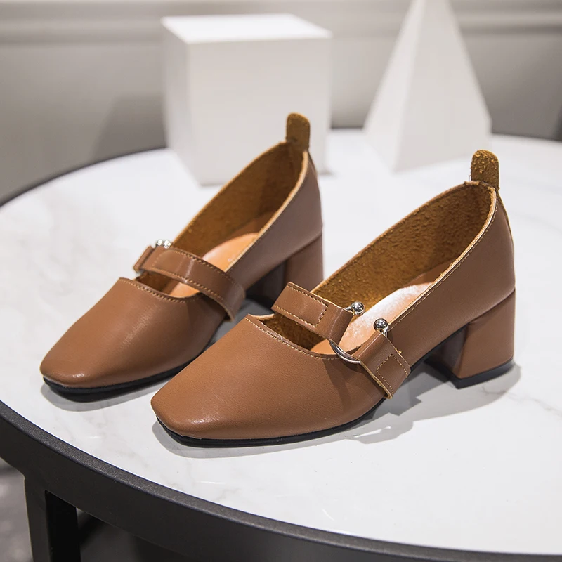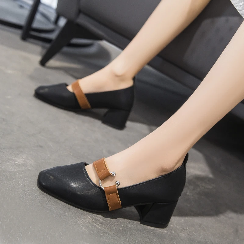 Туфли-лодочки женские, на среднем каблуке, осень размера плюс, модельные туфли с пряжкой, топ-сайдеры, туфли с квадратным носком, на массивном каблуке, 8375N, 2020