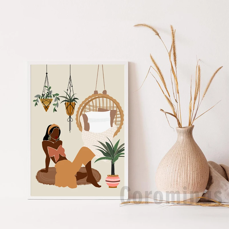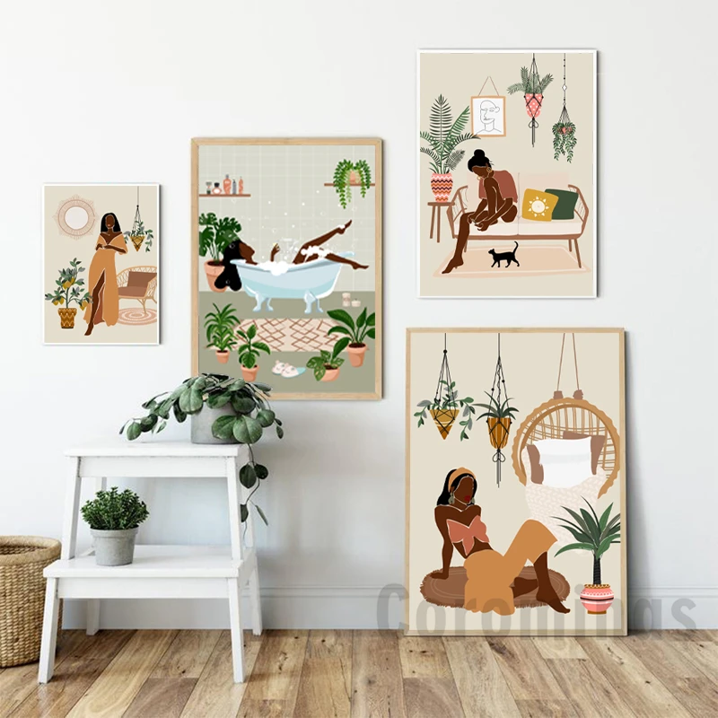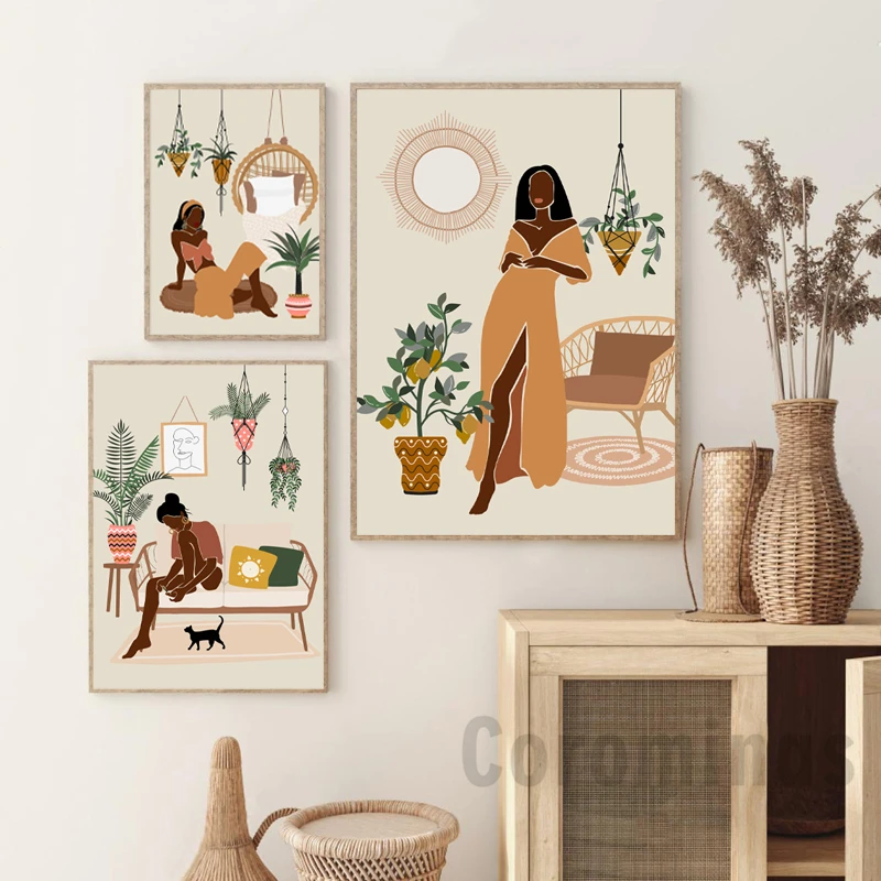 Модная афро-американская Женская печать Бохо плакат Девушки Женщины Портрет холст п...