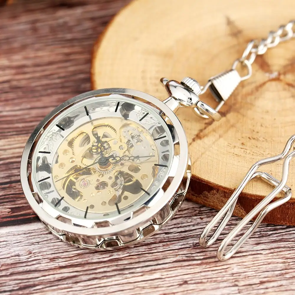 Уникальный прозрачный дизайн с открытым лицом Скелет Механические карманные часы с ручным заводом цепь ювелирные изделия часы для мужчин женщин мужчин коллекционные вещи