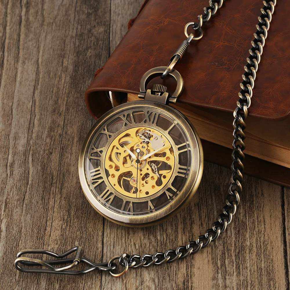 Механические карманные часы-скелетоны, прозрачные винтажные наручны...