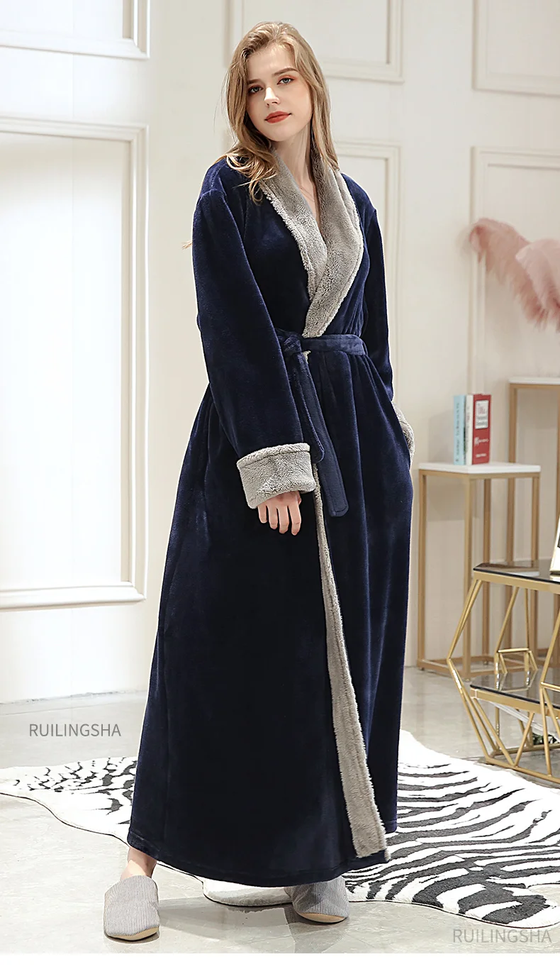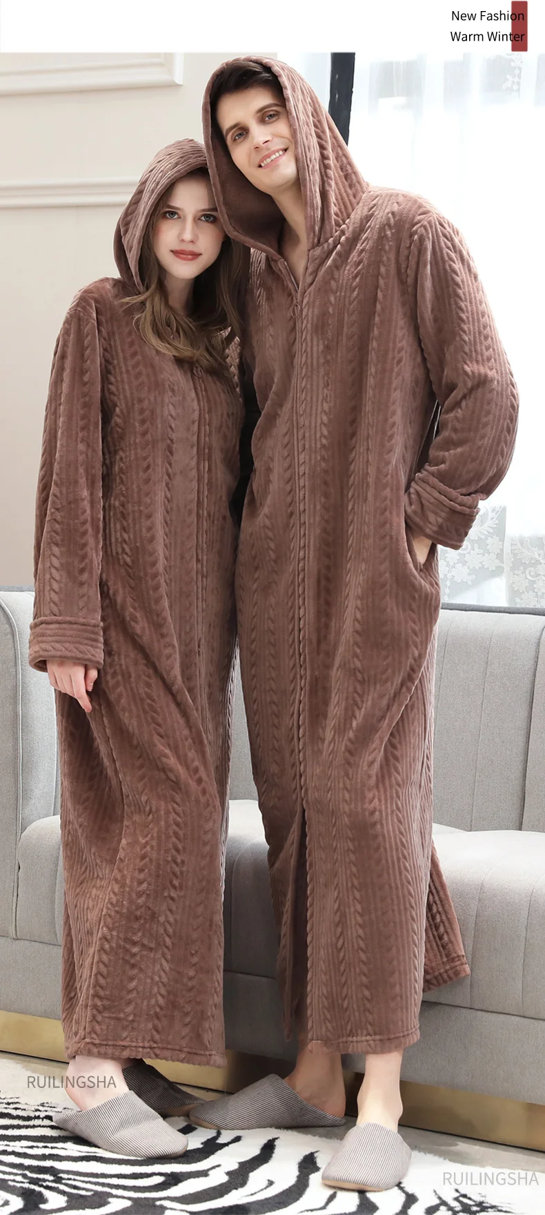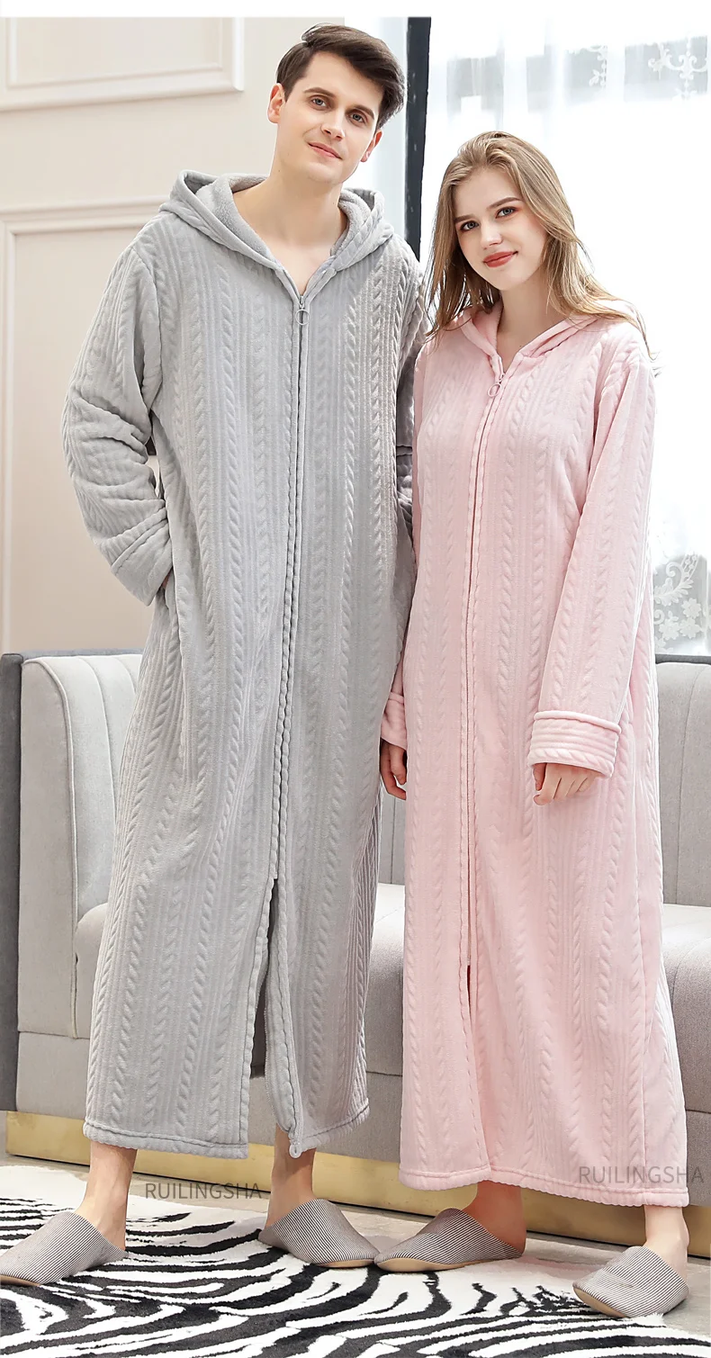 Женский удлиненный фланелевый банный халат, зимний теплый банный халат на молнии с капюшоном для беременных, размера плюс, Мужская одежда для сна