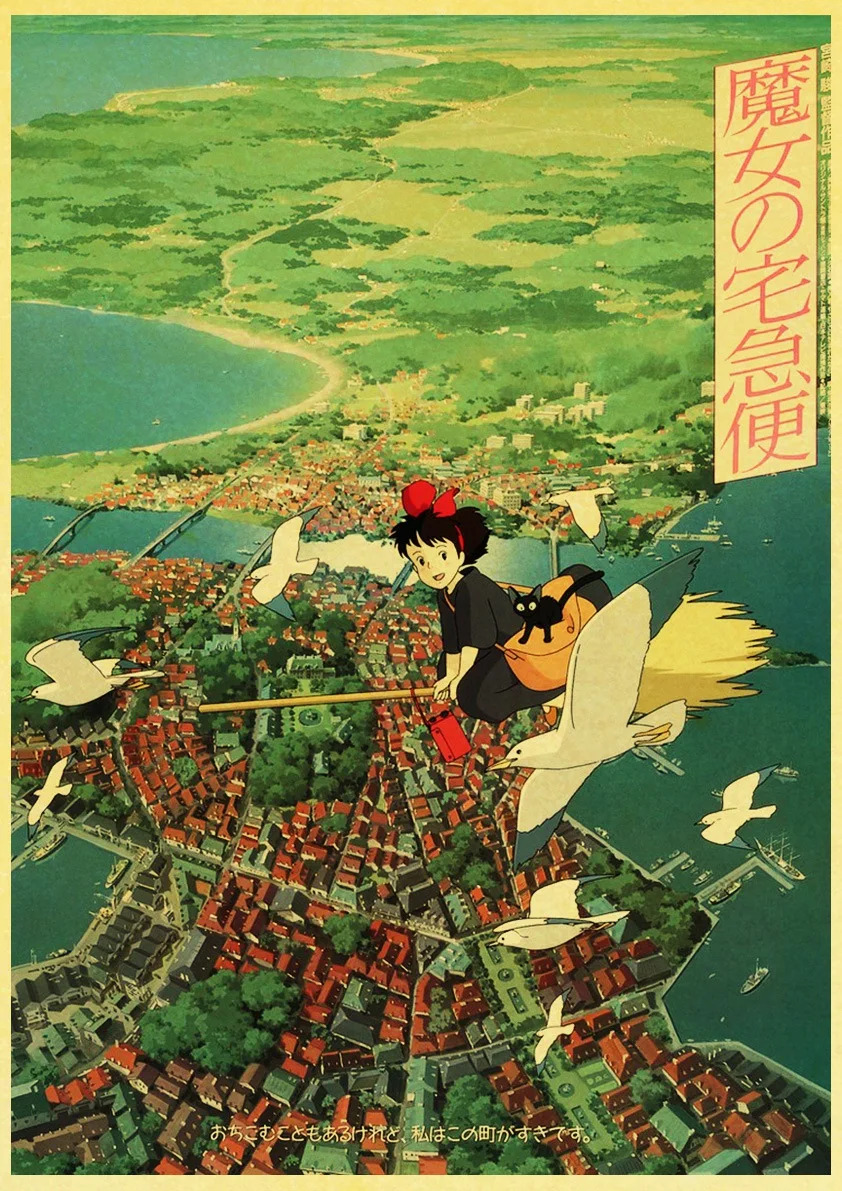 Винтажный постер Миядзаки Хаяо из фильма унесенный в спираль Tonari no Totoro в стиле ретро Laputa: замок в небе для детской комнаты 42х30см
