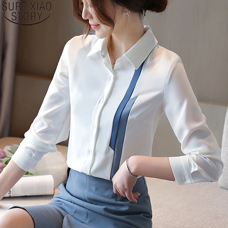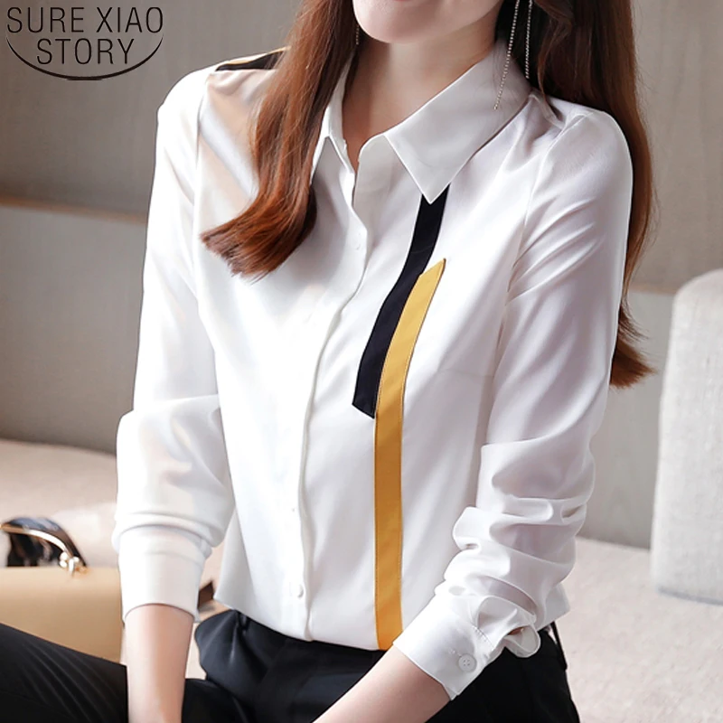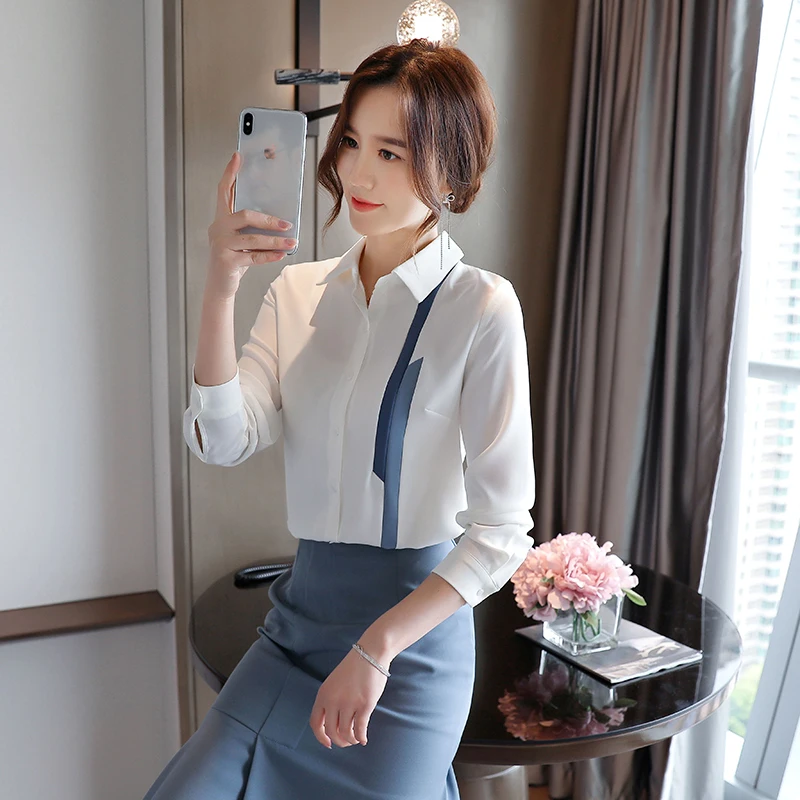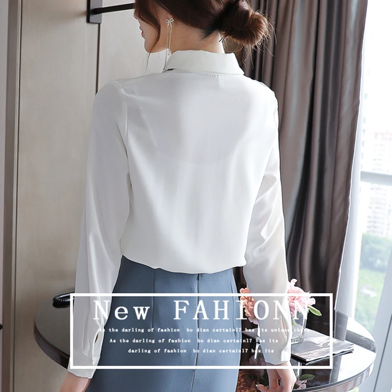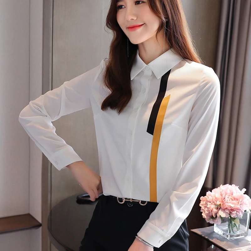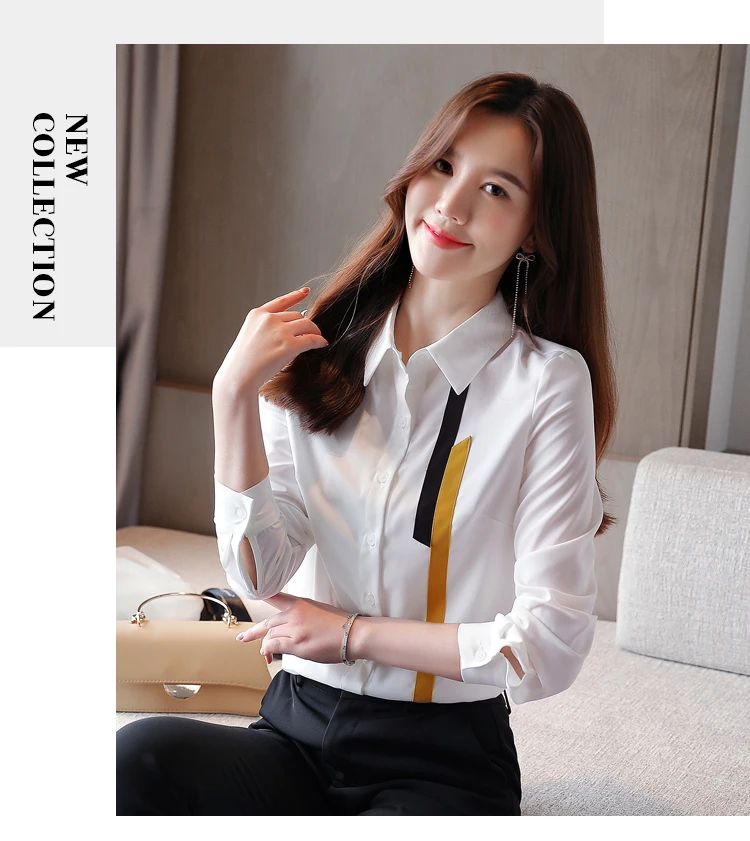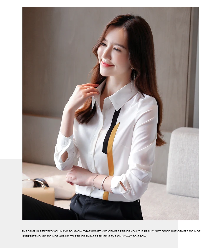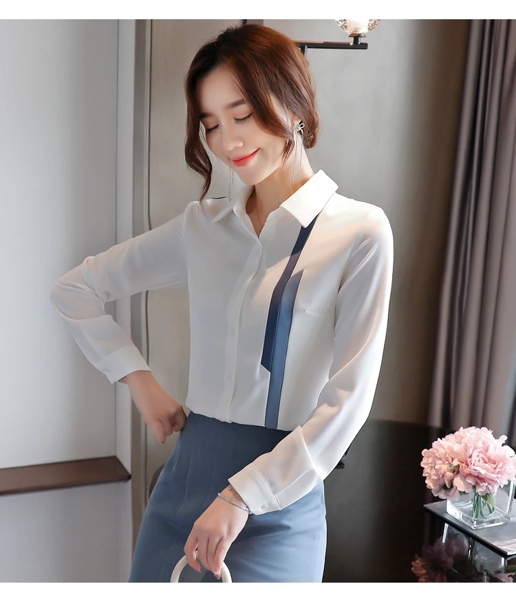 Женская Офисная шифоновая рубашка с длинным рукавом, профессиональная офисная белая блузка, элегантная Осенняя Модная рубашка в полоску, 2022, 10613