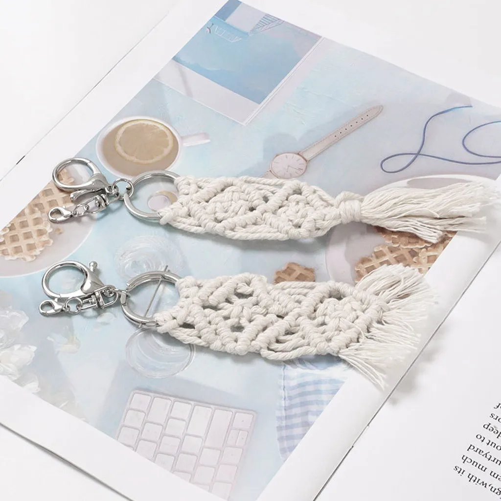 Винтажные брелоки с кисточками для женщин, бохо, брелок, макраме, сумка, очаровательное Ювелирное кольцо, подарок для друзей, Прямая поставка # W3
